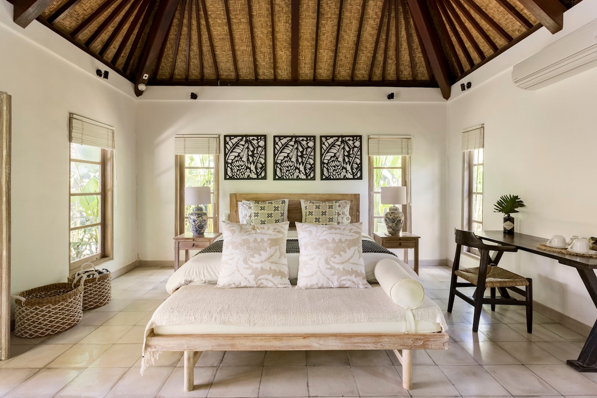 Sıçrayan əmlakımızdakı bu müstəqil Villa Bungalow-da dincəlməyin bir çox təəccüblü yollarını kəşf edin. Sulu bağları gəzin, vintaj üslublu tandem yelləncəkdə dincəlin və ya təbii daş hovuzda dincəlin. Dizayner vannasından zövq alın və ya zövqünüzü oxşayan bir kitab seçin və rahat veranda/veranda günbəzində dincəlin. Kinq çarpayınız buludda yatmağa bənzəyir. Həmçinin daxildir: - Mətbəxi ayırın - Gündəlik qulluq/təmizlik xidməti - 150mbps qədər Wifi - Çimərliyə piyada 8-10 dəq - Sakit, sakit