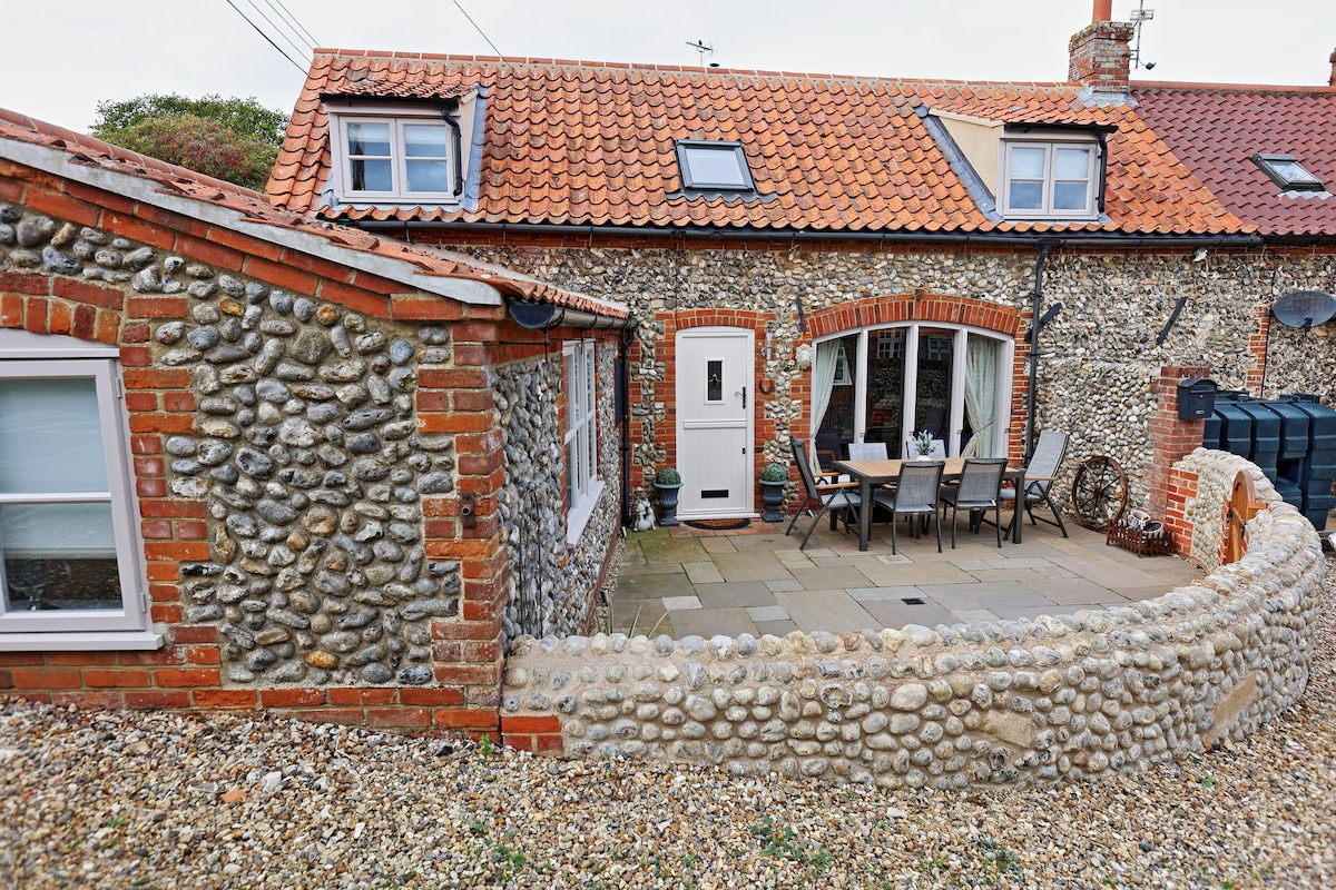 Flint is cosy, peaceful, characterful with carefully chosen modern fixtures for a comfortable stay. 3.7 miles from the sea on a peaceful country lane with far reaching rural views. Our 2 story annexe is attached to the end of our 1795 flint cottage. Regularly commented on in reviews - comfortable super king bed or made up as twin single beds. Popular for babies and children. Fully equipped kitchen great for home cooking with local farm shop nearby. Private patio, free parking, bike storage.