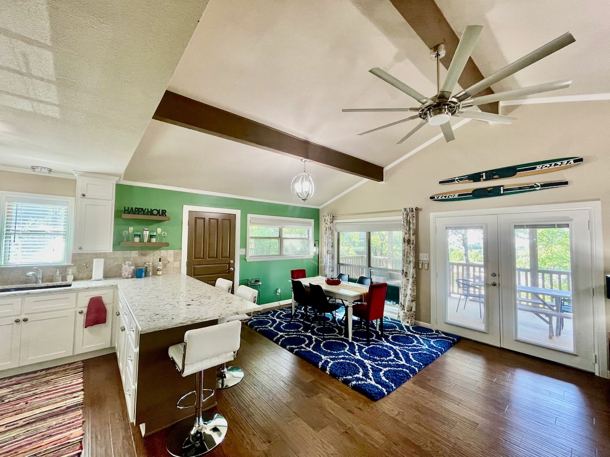 Lake Granbury waterfront! You'll love your stay at Holiday House, a unique and beautifully designed home. It's a lakeside dream including a dock, covered patios, and outdoor dining area. You'll enjoy your morning coffee, or a glass of wine while watching the sun set over the lake. The fully stocked kitchen makes preparing meals a breeze. Just a quick 6 mile drive to Granbury's Historic Square where you'll find live music, boutiques, & great dining. This is the one you've been looking for!