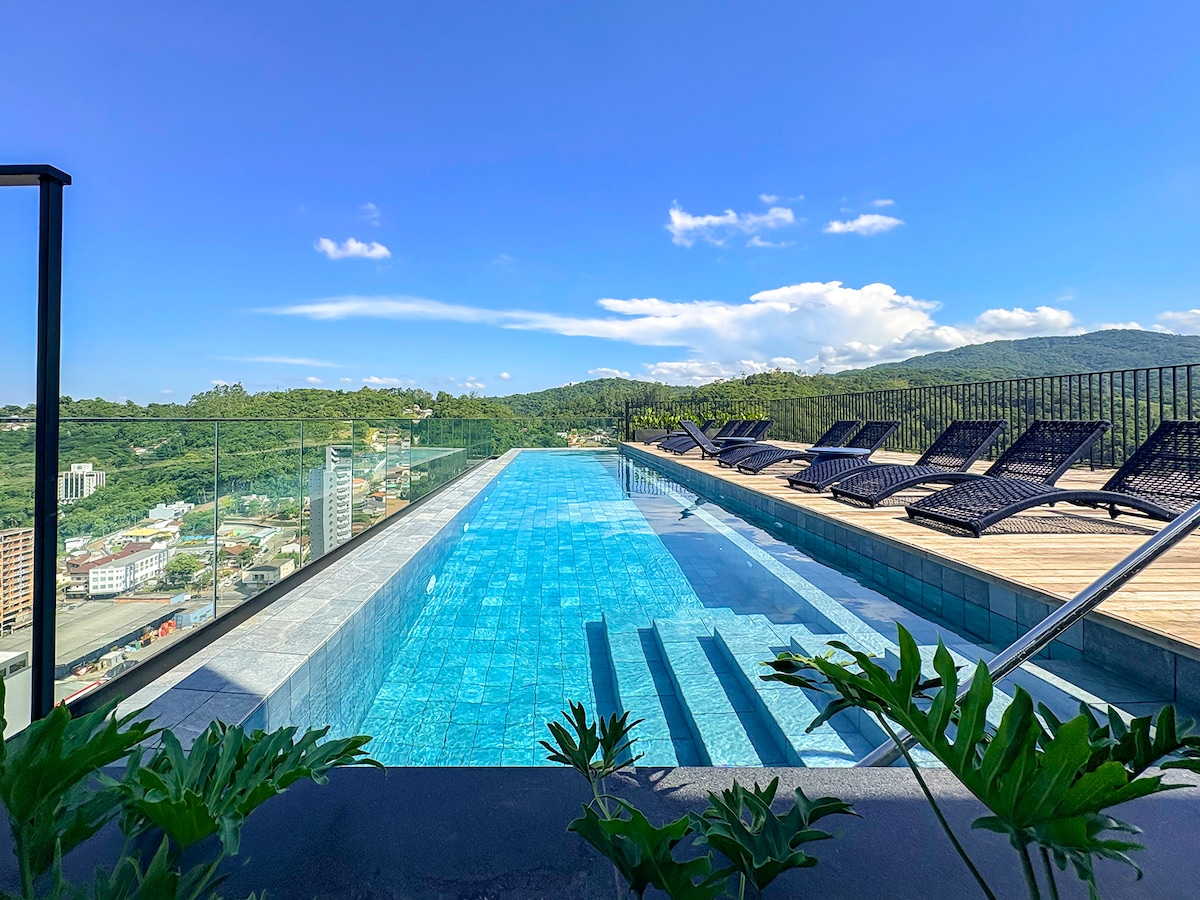 O loft é no edifício Zuhause, prédio novo com conceito e arquitetura urbana, preparado para receber pessoas que valorizam espaços finamente planejados. Conta com academia, piscina na cobertura com vista panorâmica, acesso por portaria eletrônica e 2 elevadores. Há lojas terreas em dias e horário comercial. Está a 300m da Vila Germânica onde ocorre a Oktoberfest e o Festival Nacional da Cerveja, as feiras e eventos da cidade e estará bem próximo ao centro. Poderá ser deslocar a pé de desejar.