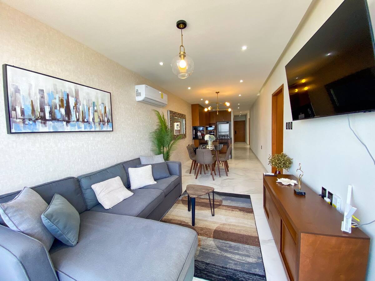 Zen House məkanları özünüz, sevdikləriniz və ətrafınızdakı sehrlərlə əlaqə qurmaq üçün bir yerdir. Aşağıdakılarla lüks sahilyanı mənzil: - Tam vanna otağı olan 🛏️ 4 yataq otağı (okean mənzərəli əsas otaq) 🍽️ - Yığılmış mətbəx 🛋️ Okean mənzərəli qonaq və yemək otağı ❄️ Bütün kondisionerli məkanlar 📶 Wi-Fi və SƏMA DAXİLDİR 24 saat 🛡️ nəzarət 2 avtomobil üçün 🚗 örtülü parkinq (maksimum hündürlüyü 2,1 m) 🛗 Lift 🛒 Planta Bajada rahat mağaza 🏊♀️ Şərikli hovuz