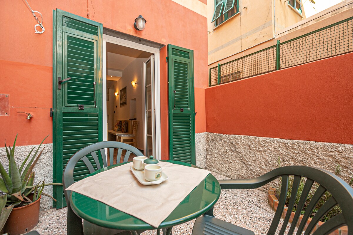 Curatissimo silenzioso apt 2 posti letto recentemente ristrutturato, a 5 minuti dalla spiaggia di Vernazzola e dalla stazione di Sturla. Dista 1,5 km dal Gaslini e dal San Martino, e 10 minuti a piedi da Boccadasse. Camera matrimoniale, un bagno e una zona giorno con cucina attrezzata e divano, oltre a un balcone e un piccolo giardino terrazzato per pranzi all'aperto. Aria condizionata, monitor (solo streaming no sintonizzatore) e wifi ultra veloce, utile per utilizzi lavorativi. PARK GRATIS