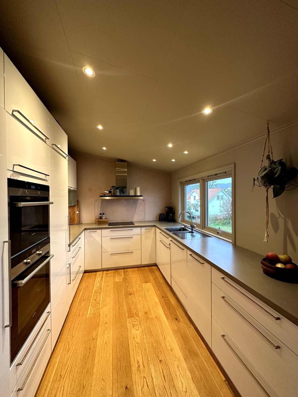 Nytt og familievennlig hus sentralt i Bodø. Her er du nært det meste; sentrum,flyplass,togstasjon,hurtigrute/ferge, shopping, restauranter, festivalområder, konsertarenaer og uteliv. Huset har 4 soverom, hvor av det ene kan brukes som tv-stue og kontor, med treningsmuligheter. Det er moderne stue og velutstyrt kjøkken. Stor terrasse med gode solforhold, sofakrok, vindskjermen, gassgrill og stort spisebord. Fin hage med lekestativ og trampoline.Og du bor nært parker, lekeplasser og bodømarka
