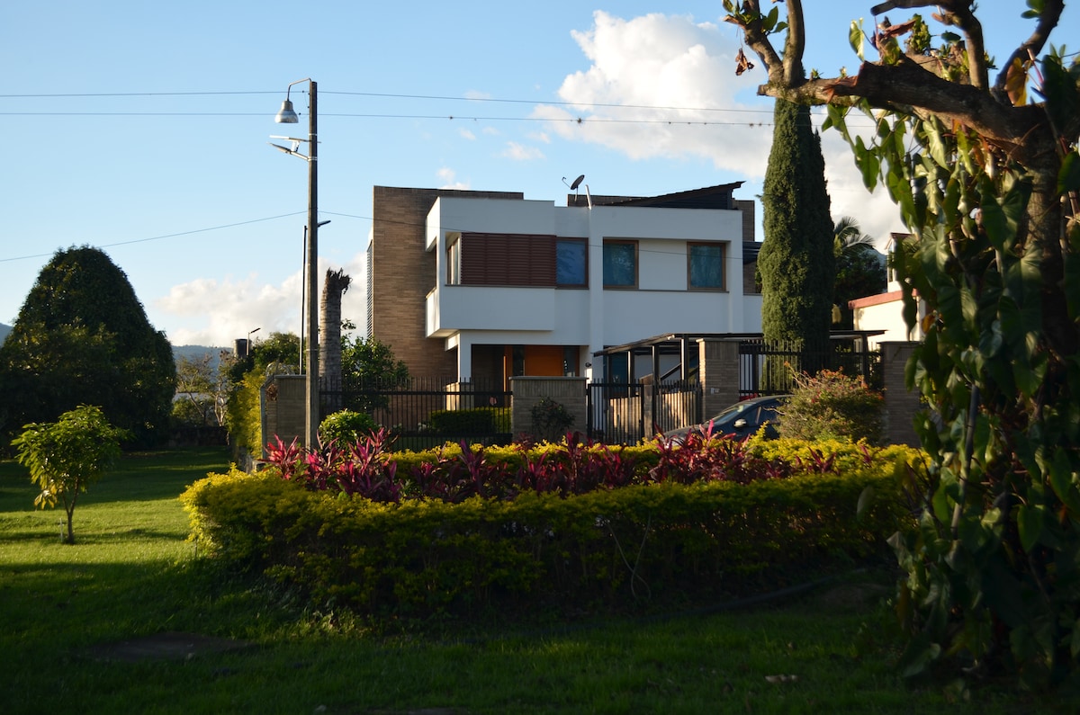 Casa cuidadosamente diseñada para captar la hermosura de su entorno natural, compuesto por árboles; gran variedad de aves; mariposas; grillos; luciérnagas y otros organismos que hacen parte del ecosistema. Todo lo anterior con la majestuosa cordillera de Los Andes como telón de fondo. Este proyecto busca alcanzar la auto sustentabilidad a través de la integración de huertos orgánicos, recolección de aguas lluvia; un pequeño lago artificial; un gallinero y compostaje de desperdicios orgánicos.