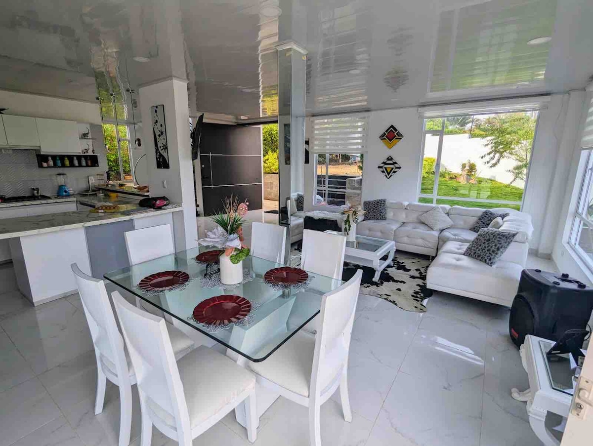 Əlaqəni kəsmək və sakitlik üçün ideal olan bu minimalist üslubda qonaqlama yerində bütün ailəniz və ya dostlarınızla əylənin. Ev bir neçə günəşli gün keçirmək və tamamilə ayrıca hovuzdan zövq almaq üçün zərif, rahat, Boqotaya çox yaxındır. Evin 30 nəfər mövcudluğu var, lakin hava bn üçün qiymət bu rəqəmdən 16 nəfər üçün nəzərdə tutulub. Hər əlavə şəxsin qiyməti 65 000 $ təşkil edir. Əlavə elementlər birbaşa əmlaka gəldikdən sonra ödənilir.
