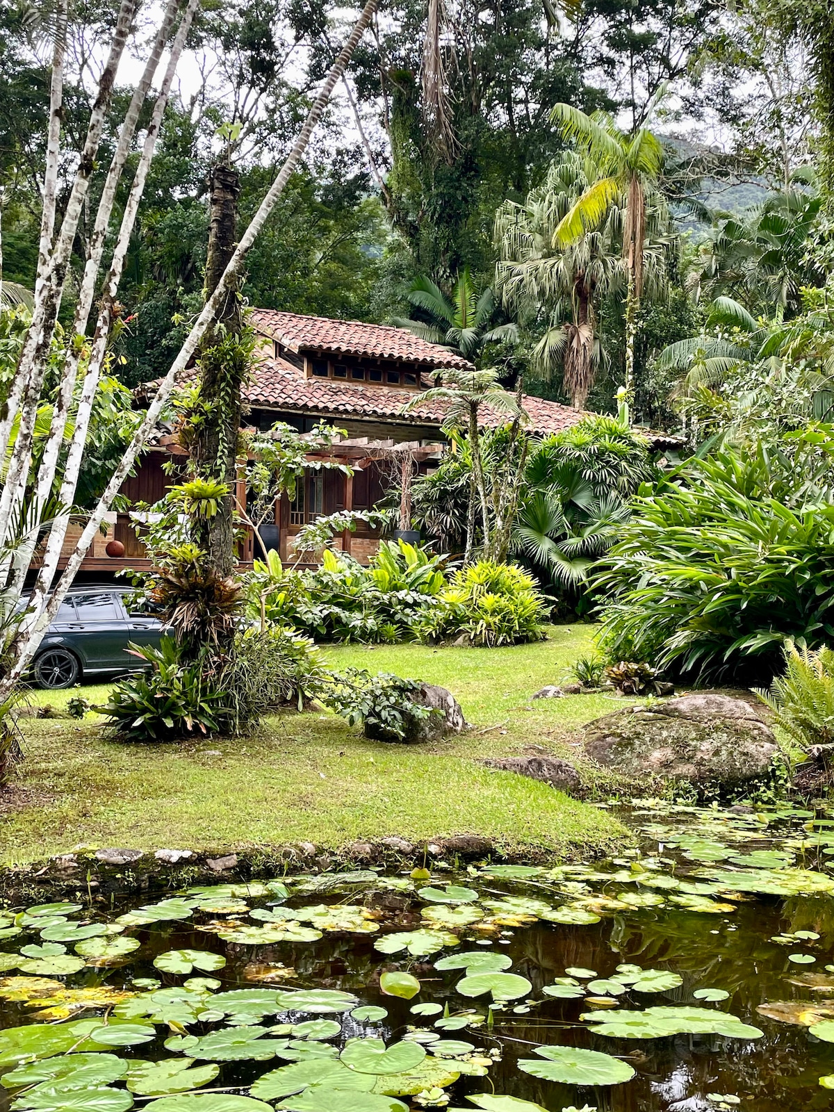 42 m² sahəsi olan, 2 kondisionerli (isti və soyuq) yataq otağı və 32 düymlük smart TV, 1 Gb Fiber Wi-Fi və 2 balkonu olan cazibədar taxta dağ evi — biri girişdə, biri isə əsas yataq otağında. Qonaq otağında buxarı, Netflix və YouTube ilə 50 düymlük smart TV, geri çəkilə bilən və uzanma divanı və tukan və tutuquşuları görə biləcəyiniz 2 tavan pəncərəsi var. Mətbəxdə öz yeməklərinizi hazırlamaq üçün zəruri ləvazimatlar var.