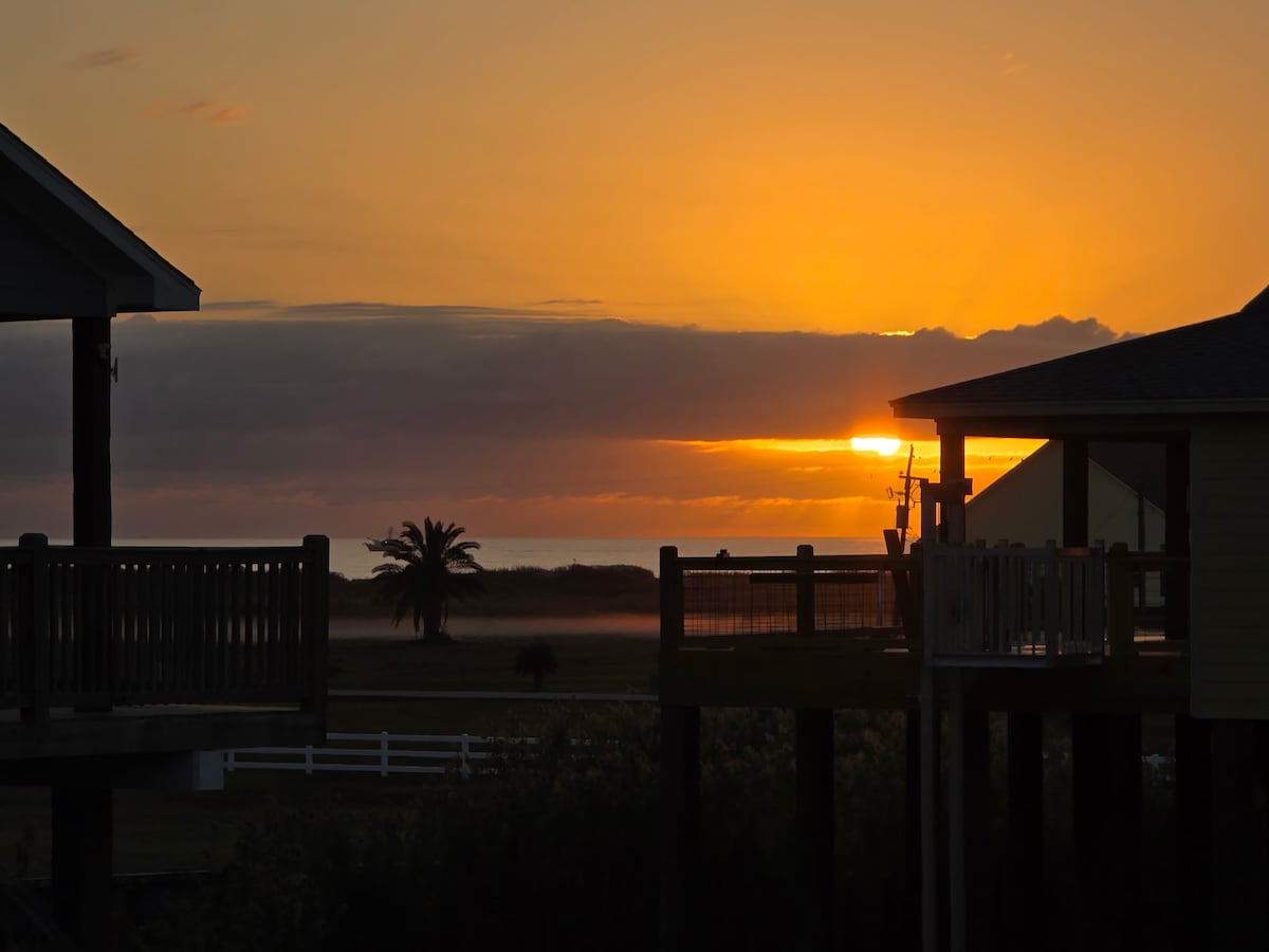 Şərq Qalveston körfəzinə baxan balıqçılıq kabinəsi. Seyvers-Katda, şəxsi kanalda yerləşir. Kabinənin terrasından balıq tutmaq və hər gün barjlar və yedək qayıqları keçərkən milyon dollarlıq gün batımları. Çox rahat və rahatdır. Körfəz tərəfdə çimərlikdən bir mil məsafədə.