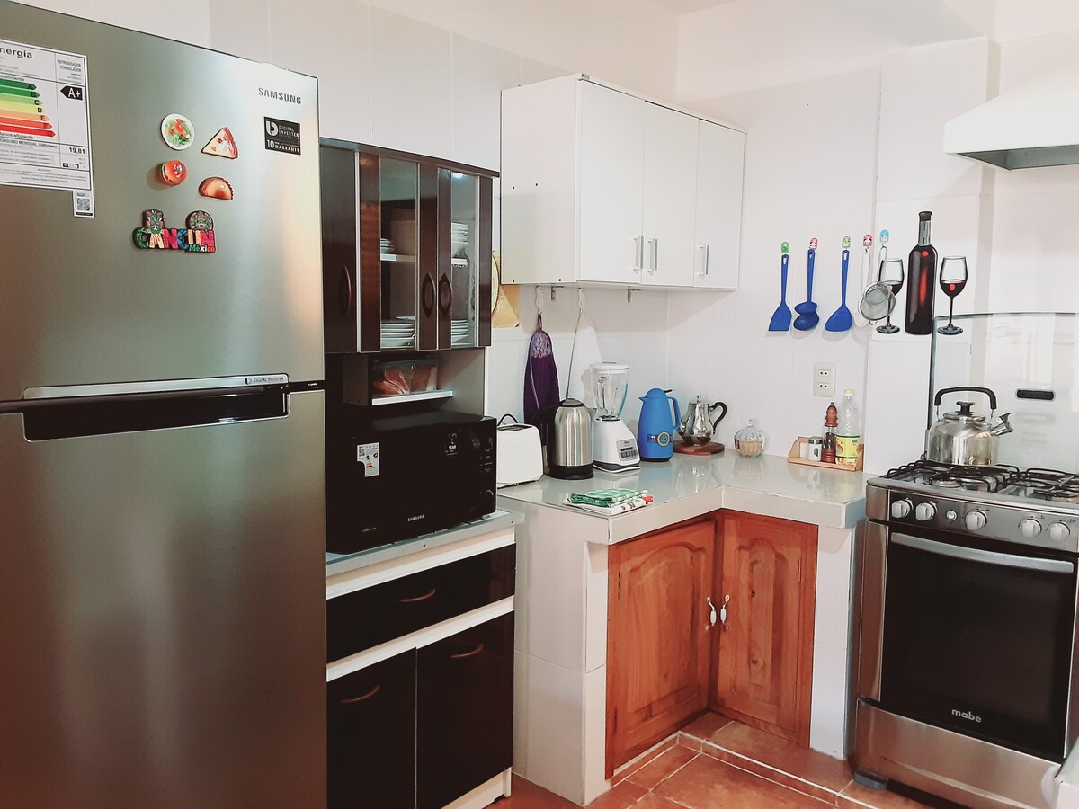 İctimai nəqliyyatın keçdiyi Tarixi Mərkəzin əsas küçəsində yerləşən bu sakit və mərkəzi mənzilin sadəliyindən zövq alın, mərkəzi bazardan 3 blok və əsas meydandan 5 blok, camaşırxana xidməti, mağaza və restoranlardan bir neçə addım məsafədə yerləşir. Evin təhlükəsiz girişi və zövq ala biləcəyiniz ümumi həyəti var. Yüksək səsli şənliklərə və ya yığıncaqlara icazə verilmir. Dəsmallar, şampun və sabun təmin edilir.