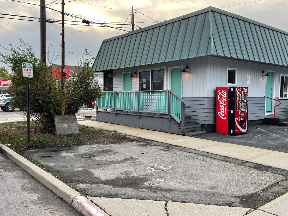 Stay in the smallest room at The Historic K2 Inn, fully updated room features Double Bed, 65” 4K Smart TV, Fridge, Microwave, Keurig. Park just outside the room. Located 1-block off Sandpoint’s Main strip enjoy walking to all the nearby restaurants, shops and bars. Free Parking, Gigabit Speed Fiber Wi-Fi, desk to work from, attached private bath features glass shower.