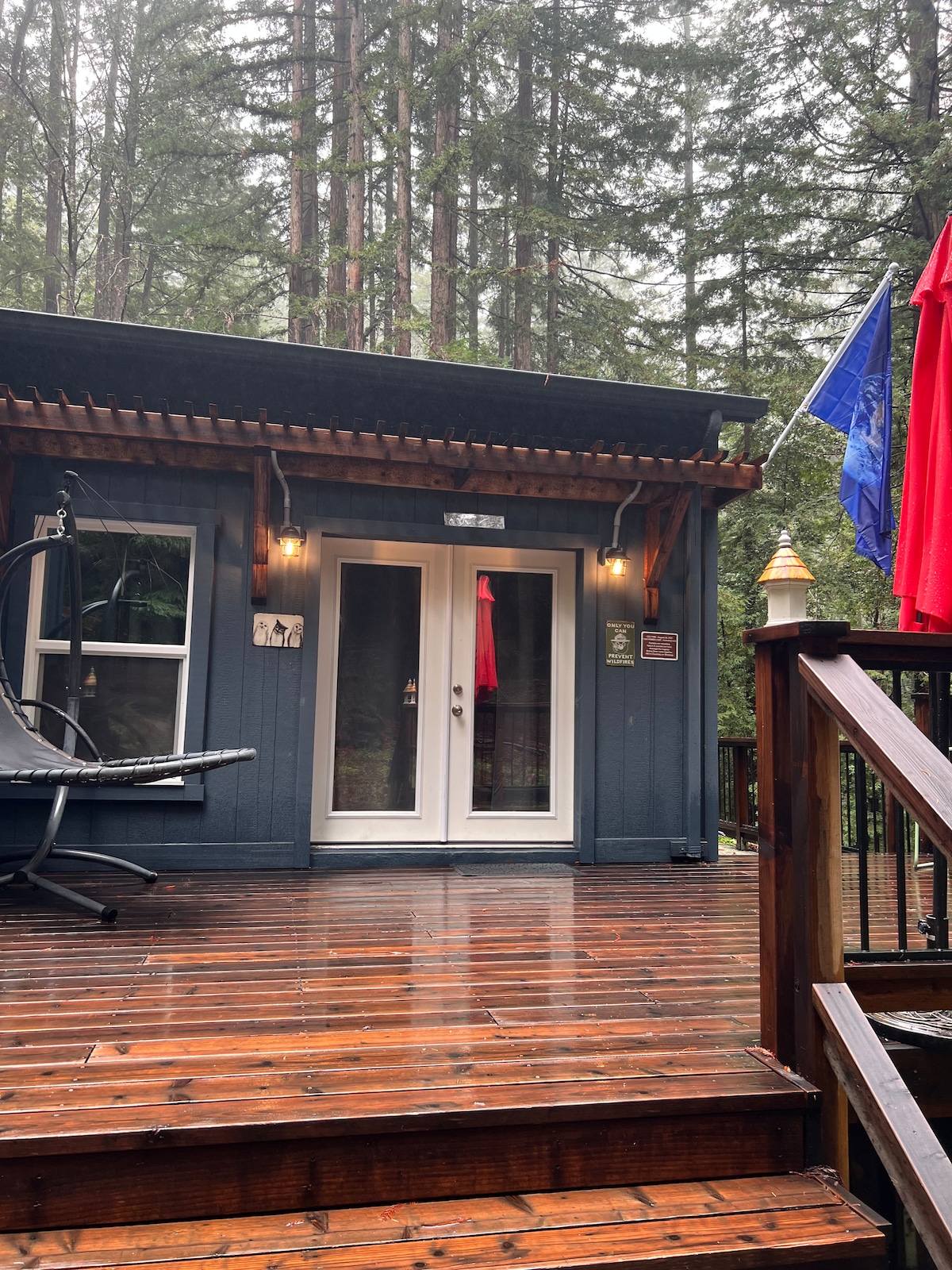 Qırmızı ağacdan hazırlanmış oyuqda sakit bir studiya. Açıq havada ayrıca cakuzi və sauna. Hamam otağı, oturma sahəsi və mini mətbəxi olan ayrıca giriş. Mənzil əsas evə birləşdirilib, lakin çox özəldir və kabinə kimi hiss olunur. Rahat otaqda, xüsusi parıltıda əylənin və ya Henri Kovell Redvuds dövlət parkını, yerli restoranları və ya turist qatarını kəşf edin. Okeana və Santa Kruza 20 dəq. məsafədə. Monterey və Biq Suru kəşf etmək üçün yaxşı bir mərkəz. San-Fransisko bir günlük səfər üçün kifayət qədər yaxındır