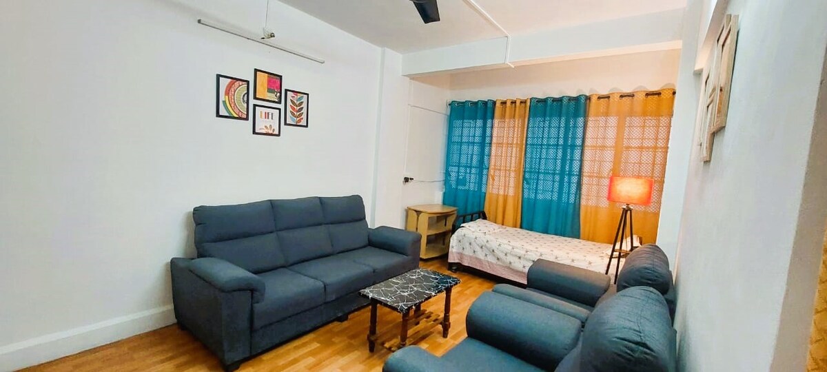 This rustic-modern 2BHK offers soft Giza cotton linen bedding, fast WiFi, a big smart TV, and a fully equipped kitchen with quality silverware. Fresh towels, a dental kit, shampoo, and other essentials are provided for a smooth stay. The entrance has a smart lock entry that makes check-in simple without anyone's intervention or locks and keys. The home is peaceful, well-maintained, and ideal for both work and relaxation. House Rules: No smoking, alcohol, parties, or pets.