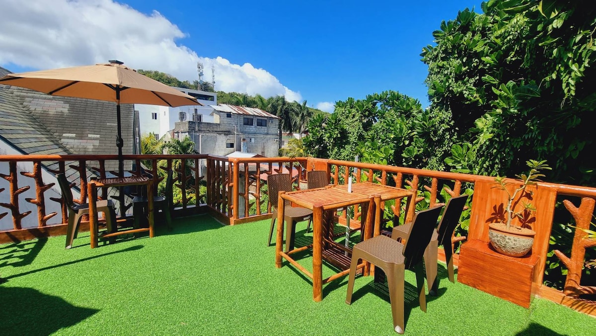 We are located at Station 1, only 1 min walk to beachfront/Starbucks, 5 min walk to Station 2 D'mall, Many restaurants/bars/stores are nearby, convenient location but super quiet area. Our building is named CiNta Hotel, a lovely small hotel, newly opened in 2024. Total 2 story 5 rooms. 3rd floor is rooftop a small restaurant & bar. This room is at 2nd floor, it's suite type with balcony and kitchen, including rice cooker, electricity stove, Pan, kettle, plates, cups, basic cooking equipment.