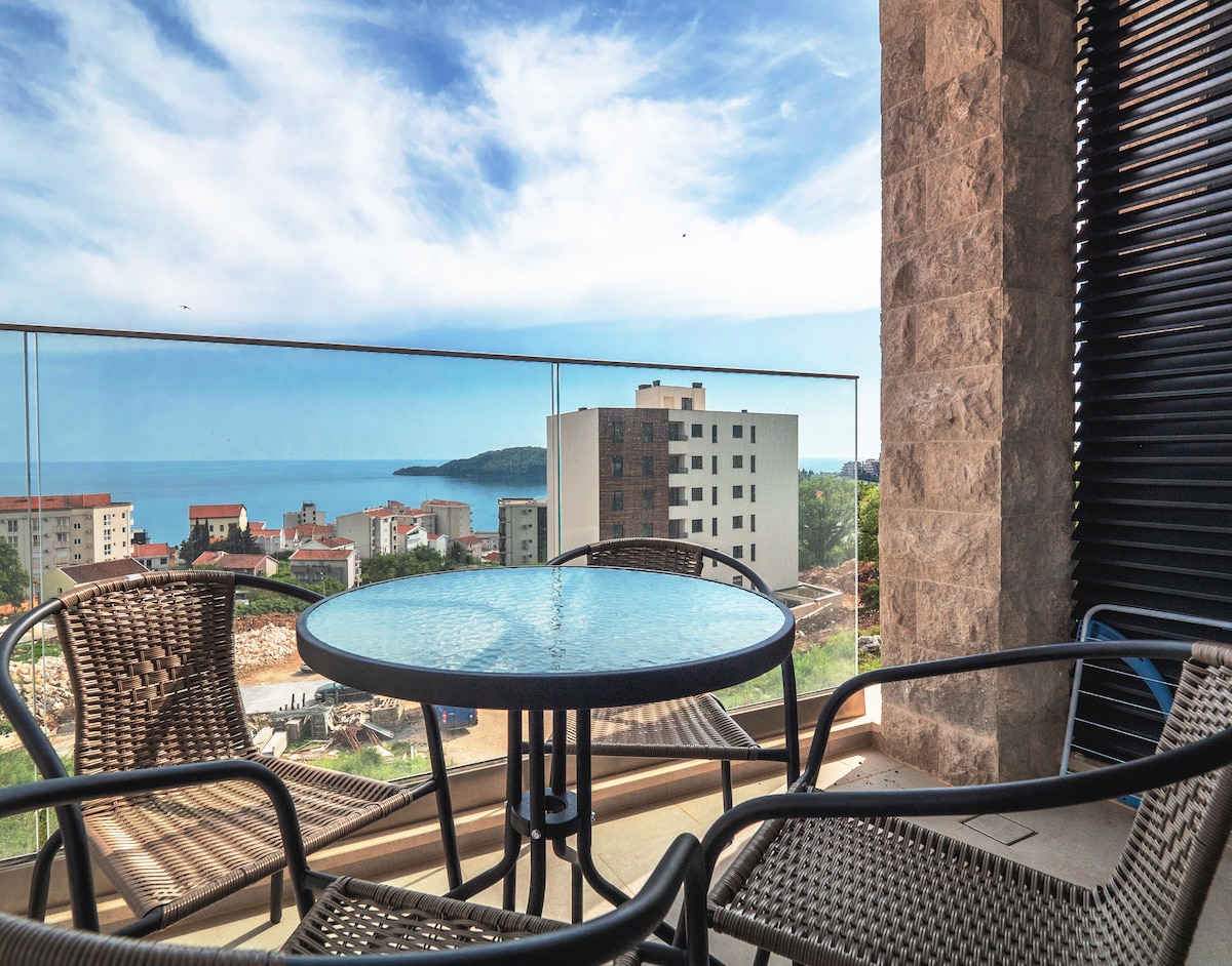 Experience refined comfort with the whole family—our space offers the perfect blend of luxury design and a true beachside atmosphere. Unwind with a stunning 180 degree view of the Adriatic Sea, 4-minute stroll to the famous Becici beach and right by a rich variety of cafes, restaurants and supermarkets. ✔ Spacious private balcony with 180* sea view ✔ Free private parking ✔ 72 sqm, 2 bedrooms ✔ 4 minute walk to the beach ✔ Infinity pool ✔ Beauty salon and restaurant on-site ✔ Elevator access