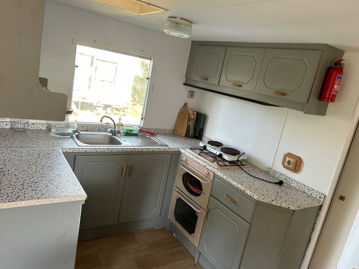 Kom tot rust in onze sfeervolle Beachy. Deze staat op een eigen veldje op onze kleinschalige boerderijcamping. Uniek aan onze caravan is dat de achterklep open kan en u vanuit uw bed (140x200) uitkijkt op de Wadden dijk. Standaard opgemaakt met een lits- jumeaux dekbed. Er is een ruime opberg kast en in het keukentje vind u een koelkast, waterkoker en Nespresso. Handdoeken zijn aanwezig. U maakt gebruik van het algemene sanitair.