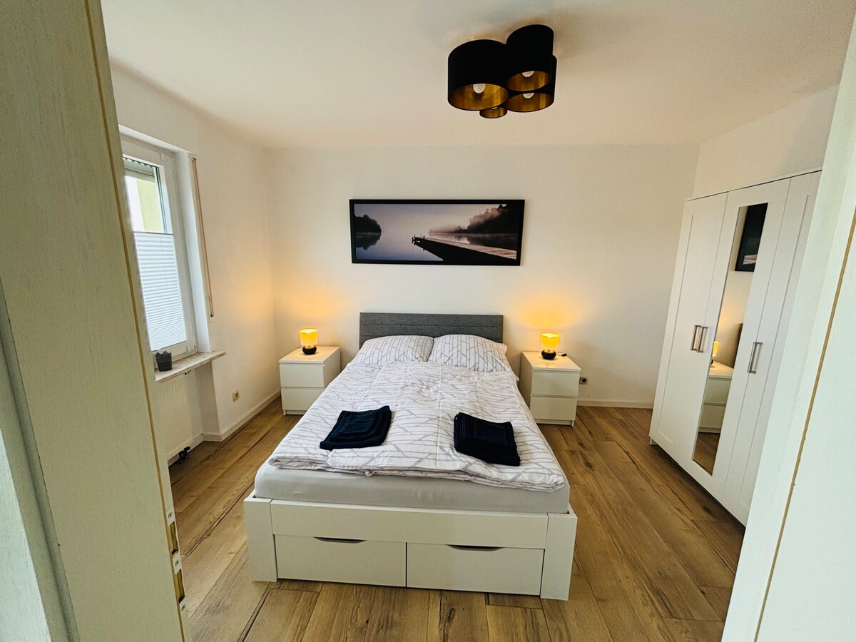 Trierdə işıqlı, yeni təmir edilmiş mənzilimiz Mattheiser Gölməçəsi parkından küçə ilə ayrılır və gözəl detallara və müasir dizayna görə çox sevgi ilə təchiz edilib. Parlaq, açıq mərtəbə planı birgə yemək bişirmək, oyunlar və televizor axşamları və ya sadəcə Moselle şərabının dadlı qədəhi ilə dincəlmək üçün kifayət qədər yer ayırır. Tarixi şəhər mərkəzi piyada məsafədədir və ya şəhər avtobusu ilə çatmaq mümkündür. Avtobus dayanacağı cəmi 30 metr məsafədədir.