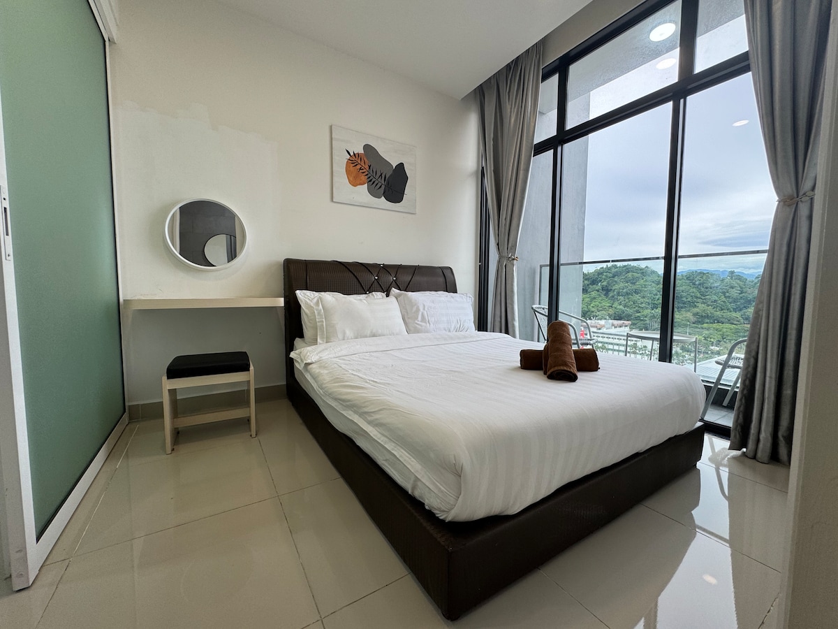 Kuçinqin ən böyük ticarət mərkəzinin (Viva City Megamall) üstündə yerləşən rahat geniş 2 yataq otağı və 1 vanna otağı, şəhər mənzərəli lüks mənzil. Kuçinq Beynəlxalq Hava Limanından cəmi 10 dəqiqəlik məsafədə Kuçinqdə əsas maraq yerlərinə və məşhur yeməkxanalara asan giriş. - Bahar Ticarət Mərkəzi (3km) - Ən Yaxşı Ərzaq Məhkəməsi (5.3km) Kuçinq - Su Önü (5km) - Saravak Dövlət Muzeyi (5km) Malayziya - Çin Dostluq Parkı (3.5km)