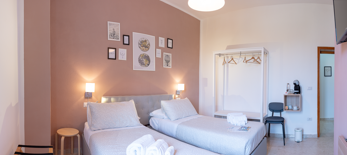 La camera Memoria è una camera doppia (con la possibilità di aggiungere un letto extra) e bagno privato.