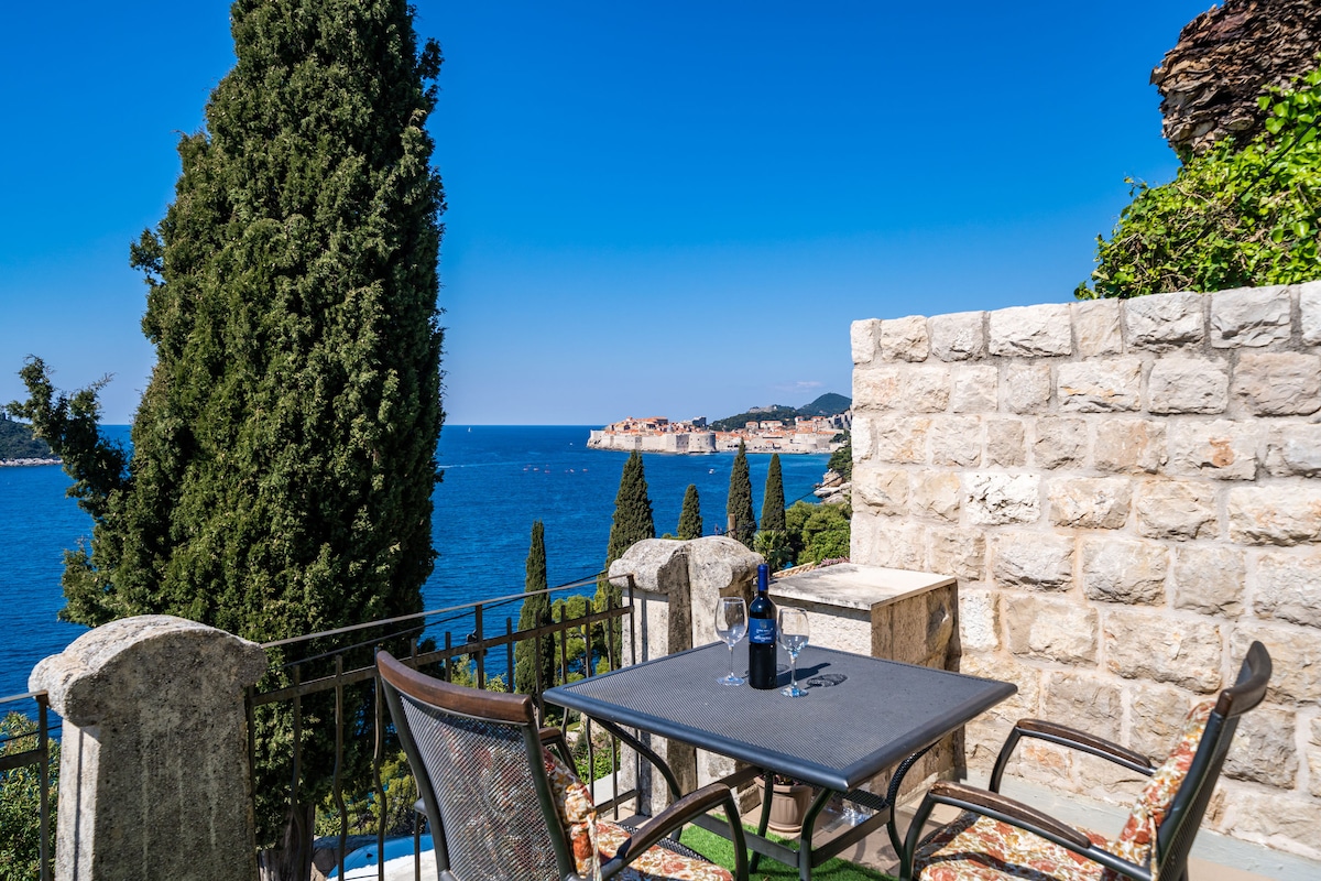 Enjoy sweeping, one-of-a-kind views of Dubrovnik's old town and the Mediterranean from your balcony. Tastefully furnished, comfortable, spacious and light-filled apartment in a quiet, charming hillside neighborhood, with plentiful amenities and reserved parking in front. The apartment has newly renovated bathroom and kitchen, and is equipped with Wi-Fi, A/C and heating, cable TV, Bluetooth speaker, washer and dryer, comfy mattresses and pillows, cotton bedding, luxury toiletries and more.