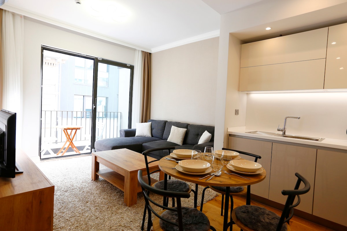 Located in the heart of Taksim, this 90 m² luxury 1-bedroom apartment is inside one of the area’s largest residential complexes with 24/7 security and parking. The apartment features a king-size bed, two balconies, and a fully equipped kitchen. Walking distance to all transport, restaurants, and attractions. Enjoy hotel-level service while feeling at home, with the support of our 24/7 staff.