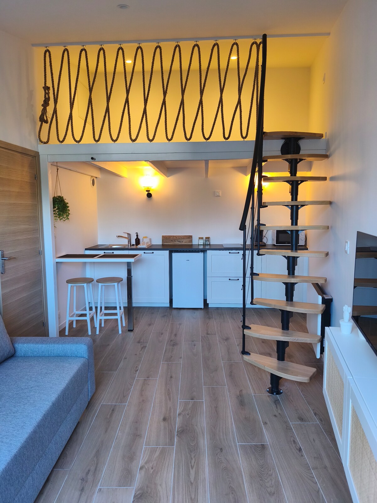Sakit və yaşayış yerində, ring yolunun və hava limanının yaxınlığında yerləşən, bu yaxınlarda təmir edilmiş, cazibədarlıqla dolu studiya təklif edirik. Avtomobillə 5 dəqiqəlik məsafədə yerləşən ticarət mərkəzi, həmçinin avtobus xətti var. Pulsuz parkinq yeriniz və ayrıca bağınız var. Açıq daş divar, romantik və dəbli atmosferi, studiyanın rahat və ultra qonaqpərvər atmosferini sevəcəksiniz! Yolda olan cütlüklər və ya peşəkarlar üçün mükəmməldir.