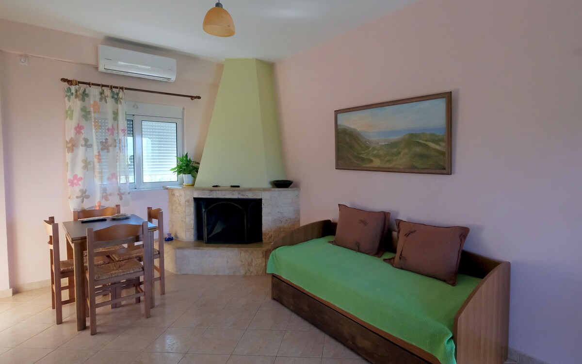 Bu cəlbedici və rahat ev sizi açıq məkanda yaşayış və aşpazlıq sahəsi ilə gözləyir. Eləcə də onun iki yataq otağı. Bina ziyarətçilərinə Alfios çayı vadisinə açılan möhtəşəm mənzərəni təmin etmək üçün bir şəkildə yerləşir və bəzi günlərdə uzaq təpələrin arxasındakı dənizin parıldayan hissəsinə nəzər salmaq şansı da var..