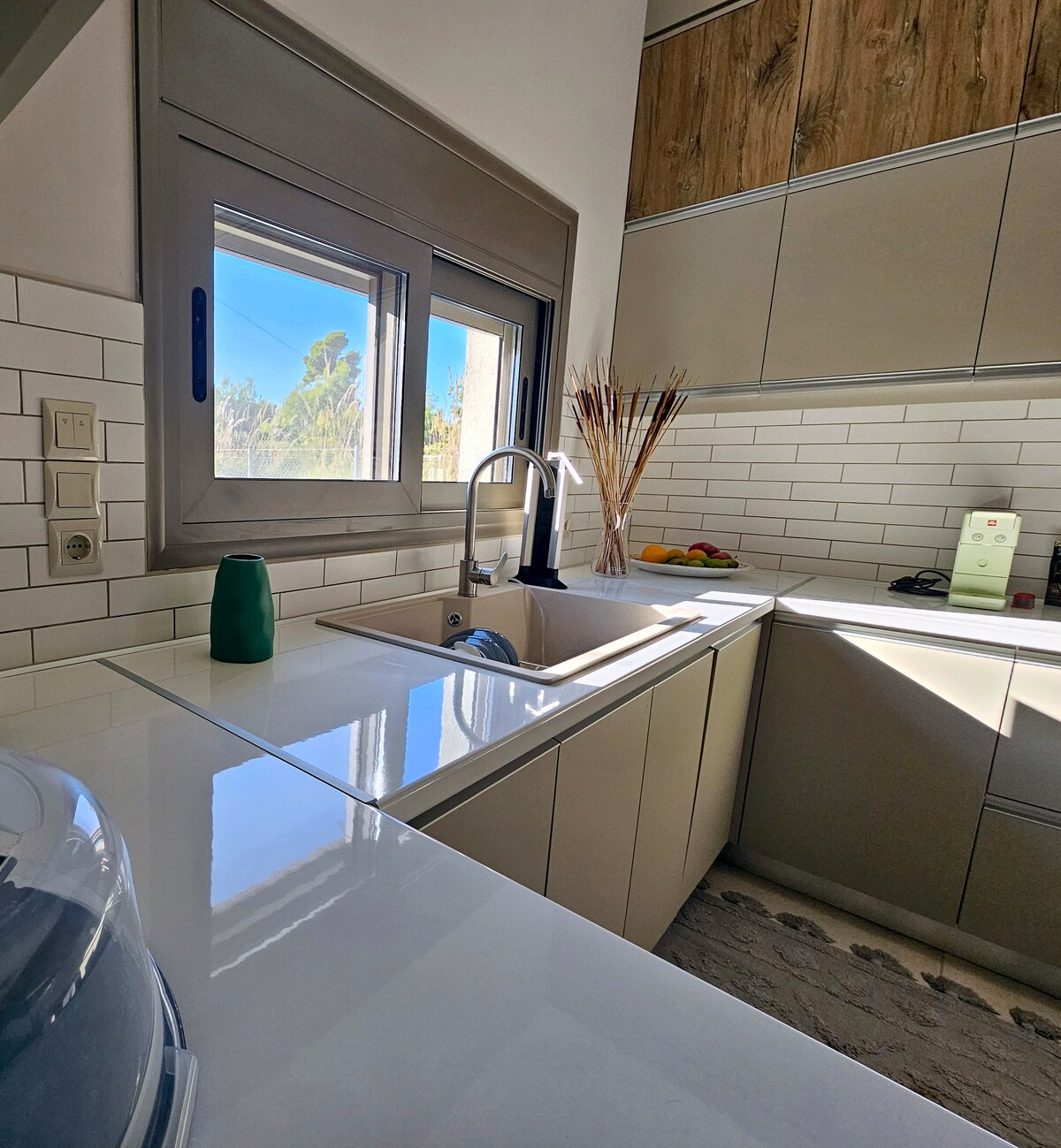 Dəniz daşı villası dənizin düz üstündə, sonsuz mavi rəngin fasiləsiz panoramik mənzərələrini təqdim edən, həqiqətən unikal bir mühitdə yerləşir. Evdən çıxan özəl pilləkən birbaşa kiçik, sakit bir çimərliyə enir və istədiyiniz zaman dənizə asan və eksklüziv giriş imkanı verir. Dalğaların sakitləşdirici səsi və sudan cəmi bir neçə addımlıq məsafədə olma hissi tam rahatlamaq üçün mükəmməl atmosfer yaradır.