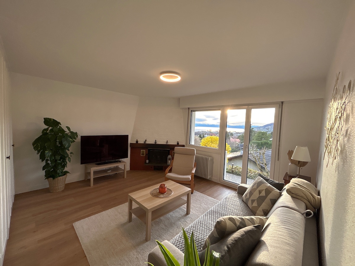 Confort douillet et le lac Léman comme panorama.