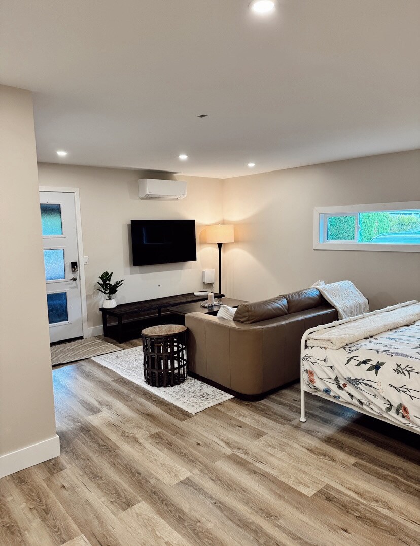 We are proud to confirm we have a license to continue operating in 2024 and beyond. Welcome to the cozy Little Love Bird Suite - a ground level 1-bedroom retreat that offers a private hot tub that's perfect for year-round relaxation. Step outside to your own private fenced yard adorned with twinkling lights and a propane fire pit, creating a magical outdoor ambiance for you to unwind. Conveniently located near major tourist attractions, pristine beaches and renowned wineries.