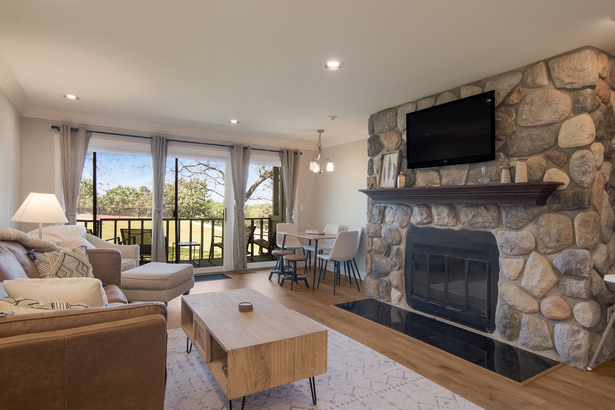 Great getaway for 1-4 guests! Schuss Mountain offers a variety of winter sports, golf and nearby attractions. This cozy first-floor condo has everything you need for a comfortable stay: *linens & towels *toiletries *laundry in unit *fully stocked kitchen *coffee/tea/cider/cocoa *high speed WiFi *tv’s in living room & bedroom *Netflix *Electric fireplace *Outdoor pool right outside (typically Memorial Day weekend - Labor Day weekend)