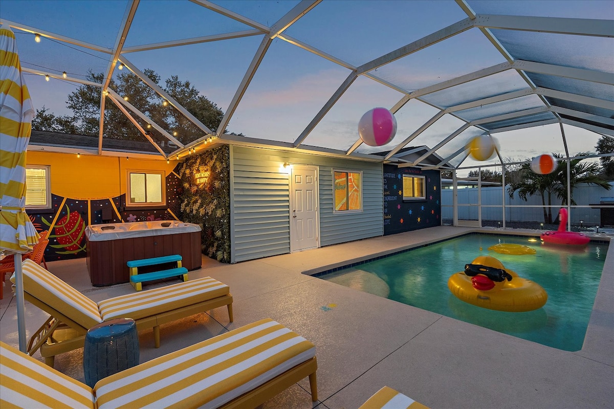 Escape the cold and dive into sunshine, sandy beaches, and breathtaking sunsets at this cheerful retreat! Perfect for family fun, this home features a heated pool, soothing hot tub, and plenty of space for games and laughter. Relax on inviting outdoor patios, soak up the warm Florida breeze, or make memories playing together indoors. With sun-filled days, cozy nights, and endless beach adventures, this is your ultimate getaway to recharge, reconnect, and celebrate life in style.
