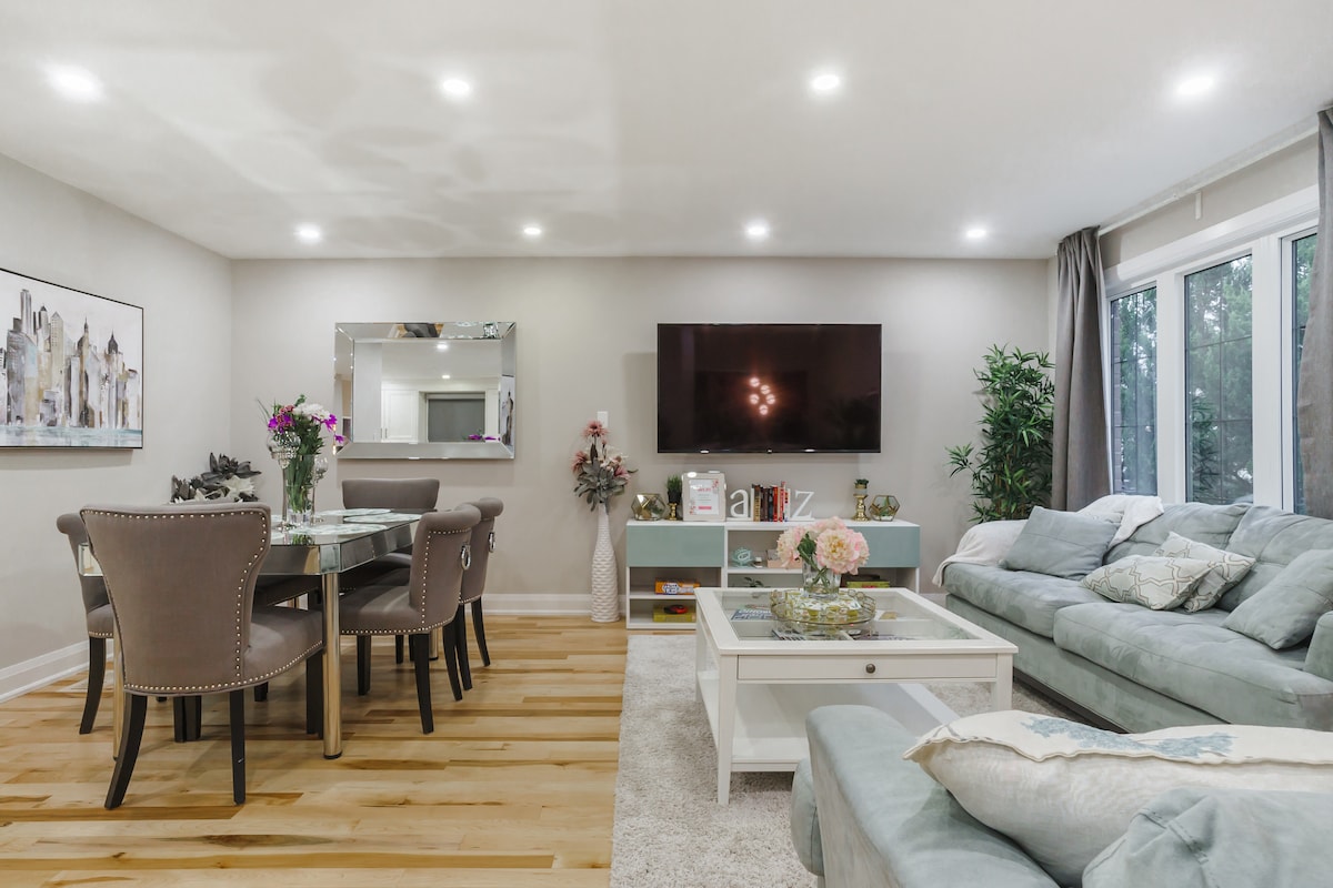 Bu mükəmməl yerdən mağaza, restoran və əyləncələrə asanlıqla giriş imkanından zövq alın. Kanadanın Ecazkarlığı olan Mərkəzi Toronto şəhərinə cəld, rahat nəqliyyatla Qatar və Avtobus Terminalına cəmi 5 dəq. məsafədə və s. Bu aşağı səviyyəli qonaq otağı öz camaşırxanası, mini soyuducusu olan balaca mətbəx, İnduksiya 2 Ocaqlı Aşpaz Üstü Soba, mikrodalğalı soba, toster və qəhvə maşını ilə tam təchiz olunub. Rahat Buxarı, 60" ekranlı HD TV və Lüks Kral Ölçüsü Çarpayı Gəzinti yolları və parkları olan Təhlükəsiz Məhəllə.