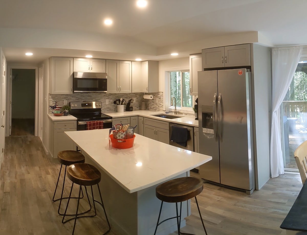 Pokono dağlarında ideal şəkildə yerləşən heyrətamiz dağ evi. Həftəsonu gəzintisi və ya bütün il boyu daha uzunmüddətli qonaqlama üçün təyinat nöqtəniz! Çöldə gözəl 1 hektarlıq xüsusi meşəlik əmlakda təbii şəraitdən, cakuzidən, iki od çuxurundan, səhər qəhvəsi üçün təndirdən və ya ləzzətli barbekyudan zövq almaq olar. Evimiz sakit daxili atmosfer təklif edir və ev bütün Pokono Dağlarının mövsümi fəaliyyətlərinin yaxınlığında rahat şəkildə yerləşir. Rahatlamaq və ya enerji yığmaq istəməyinizdən asılı olmayaraq, evimiz mükəmməl istirahət təmin edir.