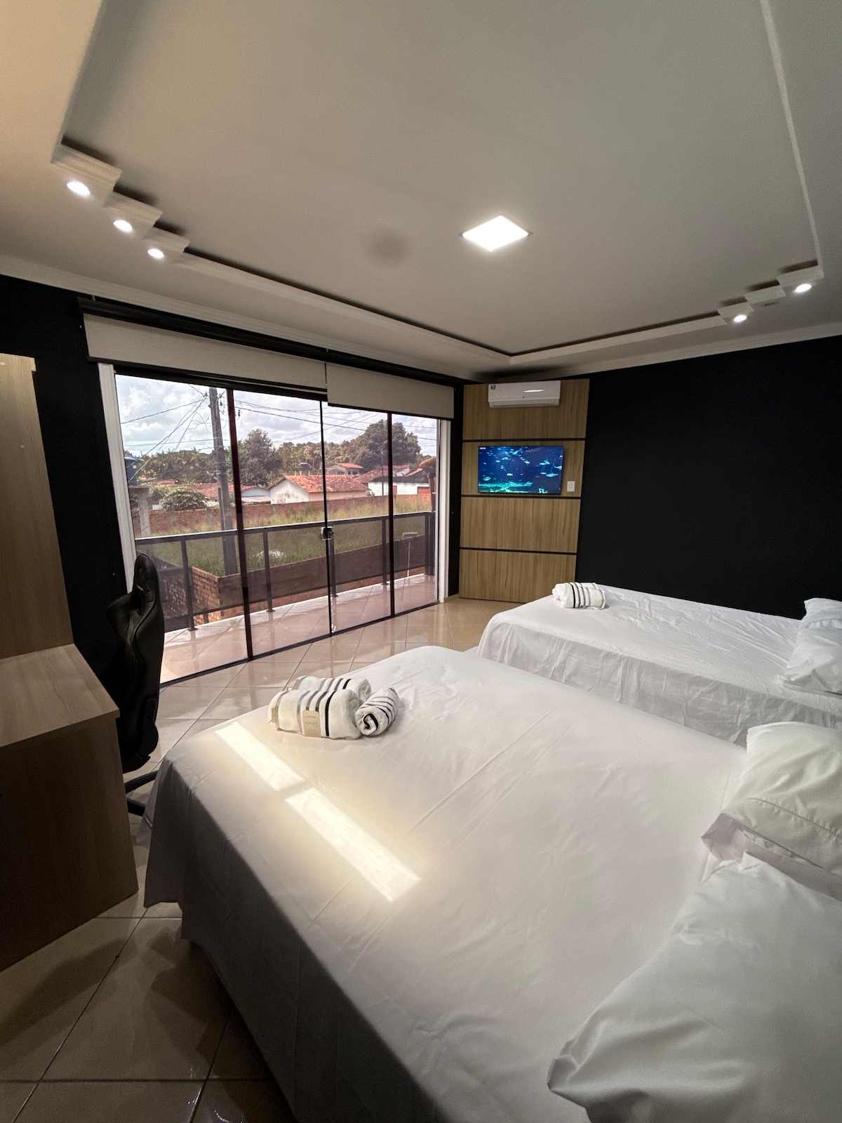 Enjoy a comfortable apartment with an amazing view and a prime location in the city center, offering easy access to leisure activities, dining, and shopping. The space features fast Wi-Fi, air conditioning, and a fully equipped kitchen, ensuring comfort and convenience throughout your stay. Relax, make the most of every moment, and experience the Amazon region with ease and practicality.