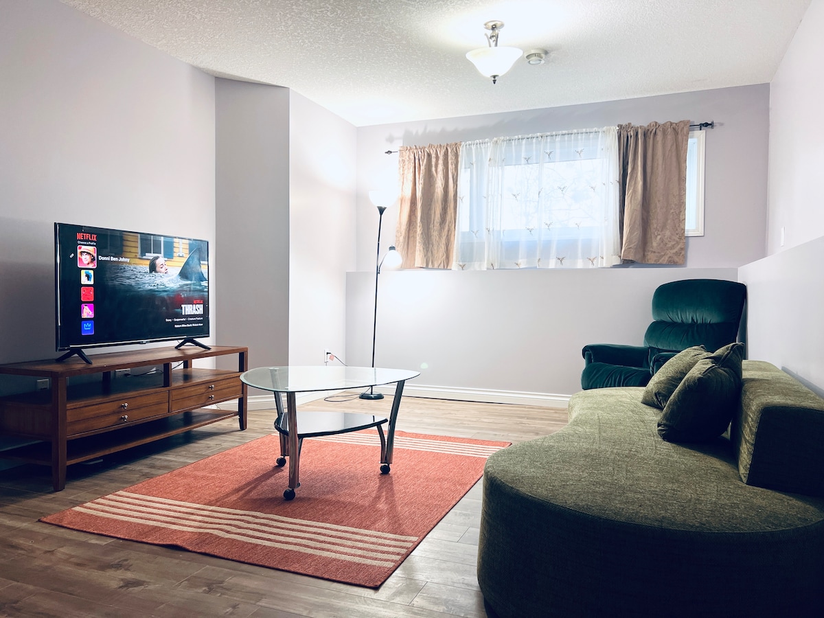 Ailələr, işgüzar səfərlər və ya həftəsonu gəzintiləri üçün mükəmməl olan yeni, rahat 2 yataq otaqlı mənzilimizə xoş gəlmisiniz. Rahat qonaqlama üçün ehtiyacınız olan hər şeylə rahat və cəlbedici. Buraya iki rahat yataq otağı, smart televizoru olan rahat istirahət otağı, tam təchiz olunmuş mətbəx, yemək otağı və təzə dəsmallarla təchiz olunmuş müasir hamam daxildir. Superstore, 7-Eleven, restoranlar və incəsənət qalereyasının yaxınlığında yerləşir. Günə başlamaq üçün qəhvə və şəkər daxil edirik. İmkanlara paltaryuyan və quruducu, eləcə də sürətli Wi-Fi daxildir.