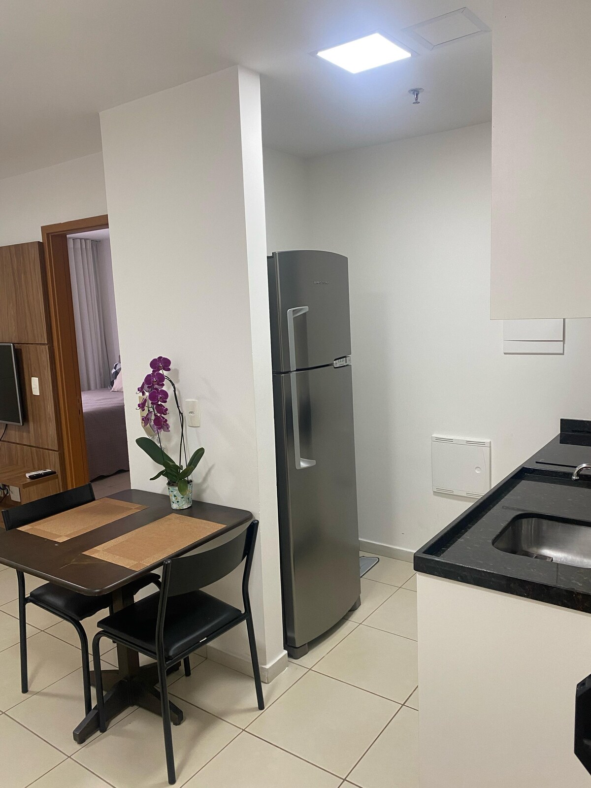 MAIS BEM AVALIADO FLAT BRASÍLIA 🗺️ Bairro Nobre ✈️ 15 min. do aeroporto 🛒 Ao lado do Supermercado 24h 🇺🇸 18 min. do consultado americano CASV 🛜 ⚡️Wi-Fi ❄️Ar cond. 🎥TV Smart 👨🏻🍳Fogao, Geladeira, Microondas e utensílios (Não temos filtro) 🅿️ Garagem privada a parte 🛁 Chuveiro, Toalha, sabonete, shampoo e condicionador. :. ÁREA COMUNS: 👙😎🩲 Piscinas, academia, Sauna, Jacuzzi (fechado às segundas) :. PROXIMIDADES A PÉ: Ⓜ️5 min Metrô 🛍️ 5 Principal shopping de Brasília