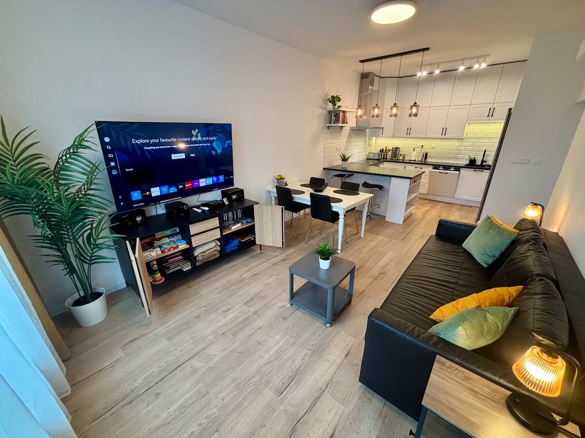 Bratislavanın mərkəzində, 19-cu mərtəbədə yerləşən dəbli mənzildə qonaqlama təcrübəsi yaşayın. Gözəl mənzərəli, müasir üslubda təchiz olunmuş məkan. Əla mövqe: Niva AVM-dən bir neçə addımlıq məsafədə, mənzərəli Dunay və çoxlu kafe və restoranları olan dəbli Eurovea-dan 5 dəqiqəlik məsafədə, tarixi mərkəzdən 5-10 dəqiqəlik məsafədə. Mərkəzi mövqe, yaşıl ətraf və evin qarşısındakı uşaq oyun meydançası məkanı yalnız İşgüzar səyahətçilər üçün deyil, həm də uşaqlı ailələr üçün ideal edir. Rahatlıq və üslub - unudulmaz qonaqlama üçün lazım olan hər şey.