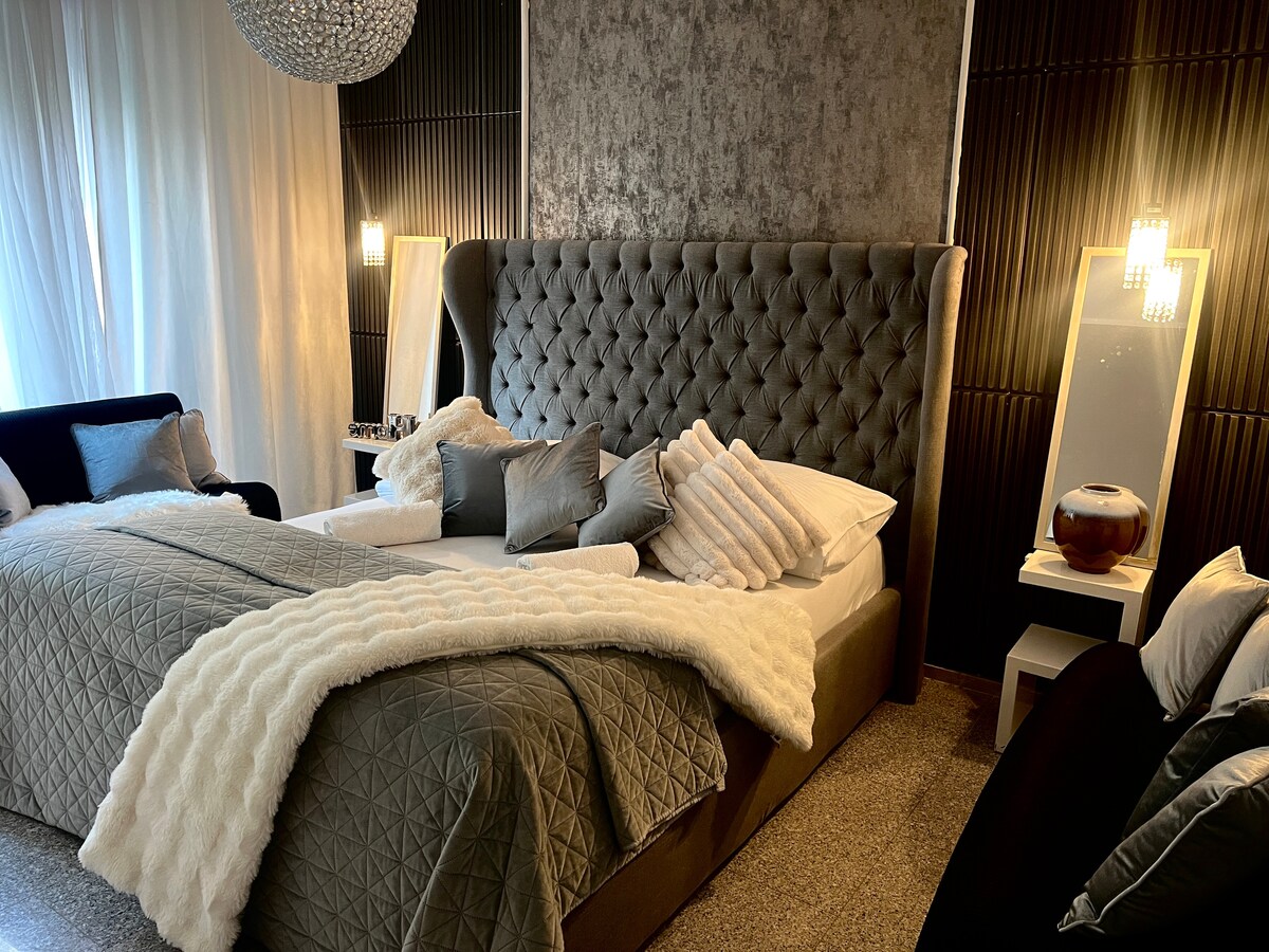 Bratislava qəsrinin altındakı bu dəbli süitada kral rahatlığını təcrübədən keçirin. Rahat buxarıdan, dəbdəbəli geniş çarpayıdan və tənzimlənən iş sahəsindən zövq alın. Tam təchiz olunmuş mətbəx və hamam otağı problemsiz qonaqlamanı təmin edir. Heyrətamiz Dunay və UFO Körpüsü mənzərələri ilə loqgiyada dincəlin və ya küncdə yerləşən köhnə şəhərə/qalaya gedin və bütün köhnə şəhərdən zövq alın! Xüsusi qapalı qarajda parkinq daxildir. 140 sm-lik divan çarpayıda 2 əlavə qonaq yatır. Cazibədarlıq, rahatlıq və mövqenin mükəmməl qarışığı.