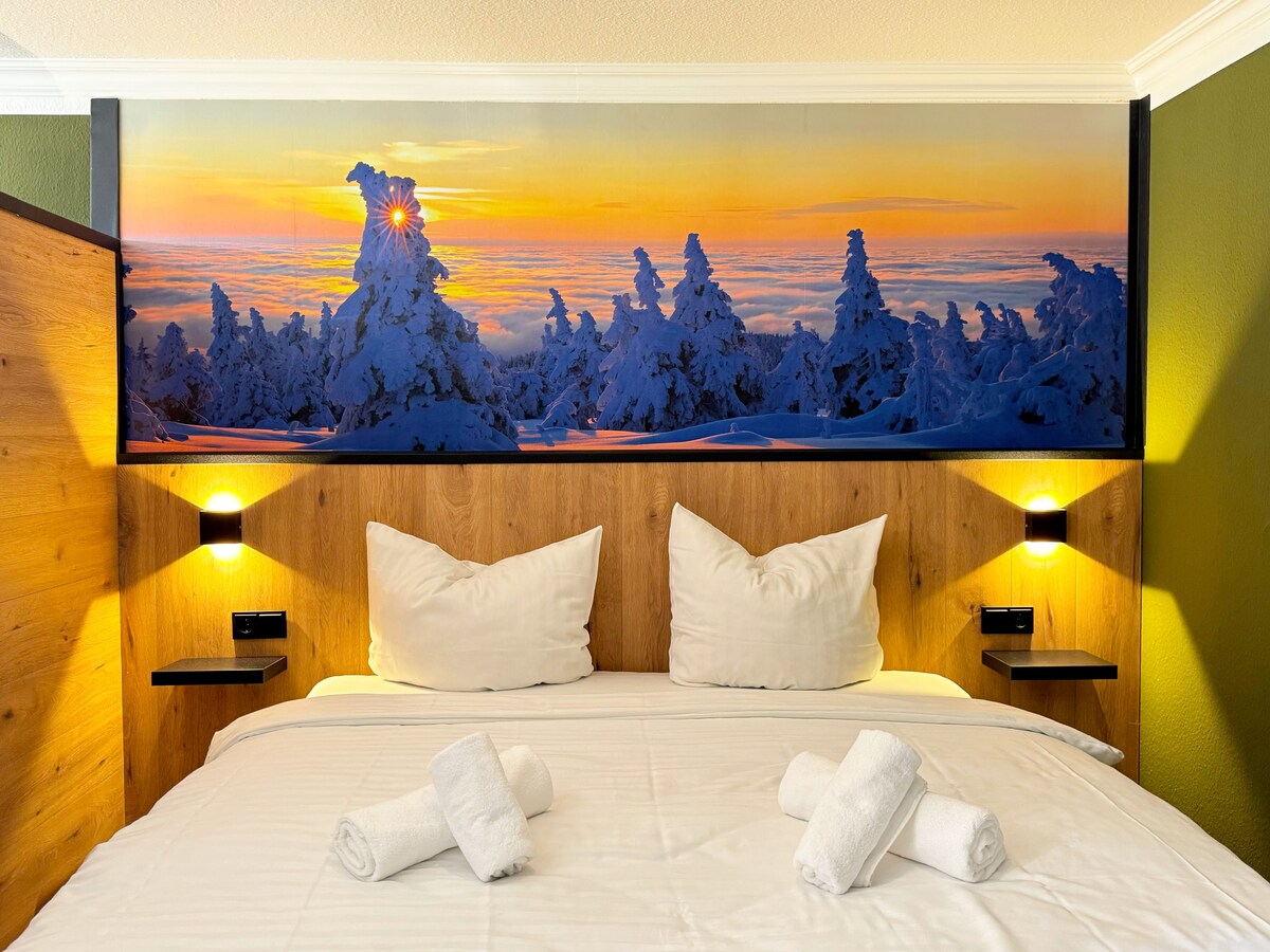 STANMA‘s Alpinpartment läd dich zum entspannen mit freiem Blick auf die Rodelwiese ein. Dazu sorgt die private Infrarot Sauna (wird beim Check in pro Aufenthalt mit 30 € berechnet) in der Wohnung für Wellness feeling nach langen Wanderungen. Die Wohnung befindet sich ruhig in Randlage von Braunlage, Einkaufsmöglichkeiten und das Zentrum sind jedoch in wenigen Gehminuten erreichbar. Die voll ausgestattete Küche mit Heißluft Fritteuse und Spülmaschine ist perfekt zum kochen für 2 Personen.