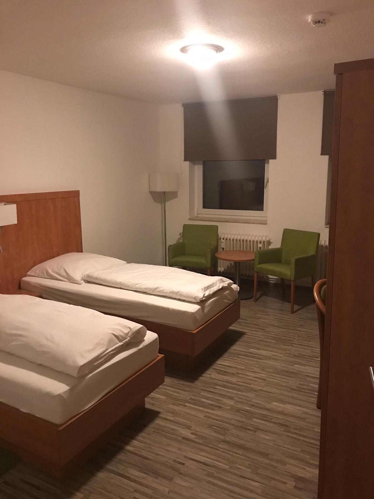 Zimmer mit 4 Einzelbetten & sauber Bettwäsche in einen 2 Zi-Wohngemeinschaft WG für Studenten bzw. Handwerker. BITTE BEACHTEN: WG ist kostengünstig & bescheiden ausgestattet. Es sind bis 2 weitere Bewohner da mit diverse Gewohnheiten und ggf. Unordnung/Dreck. Bewohner zuständig für Bad und Küchen-Reinigung. Keine Hotel Qualtäten. Zusatzperson/Bett möglich gegen Aufpreis. Gedacht für langfristige Aufenthalt mit Anmeldung. Kurze Probezeit nur möglich falls Langfristige Aufenthalt beabsichtigt!
