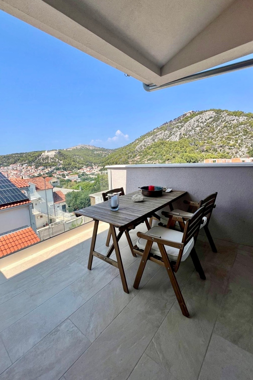 This apartment was freshly renovated in 2025. Spacious and cozy apartment with a lovely sea view balcony. It is placed on the third floor of our family house, “Veli Bok”. The apartment consists of an entrance hall, bathroom, studio area (kitchen, dining area, sleeping area, and living room area), and a balcony. Ideal for a couple or small family with one or two small kids. Our house is located 20/25 minutes' walk from the harbour/main square, which is 1,5 km/2 km away.