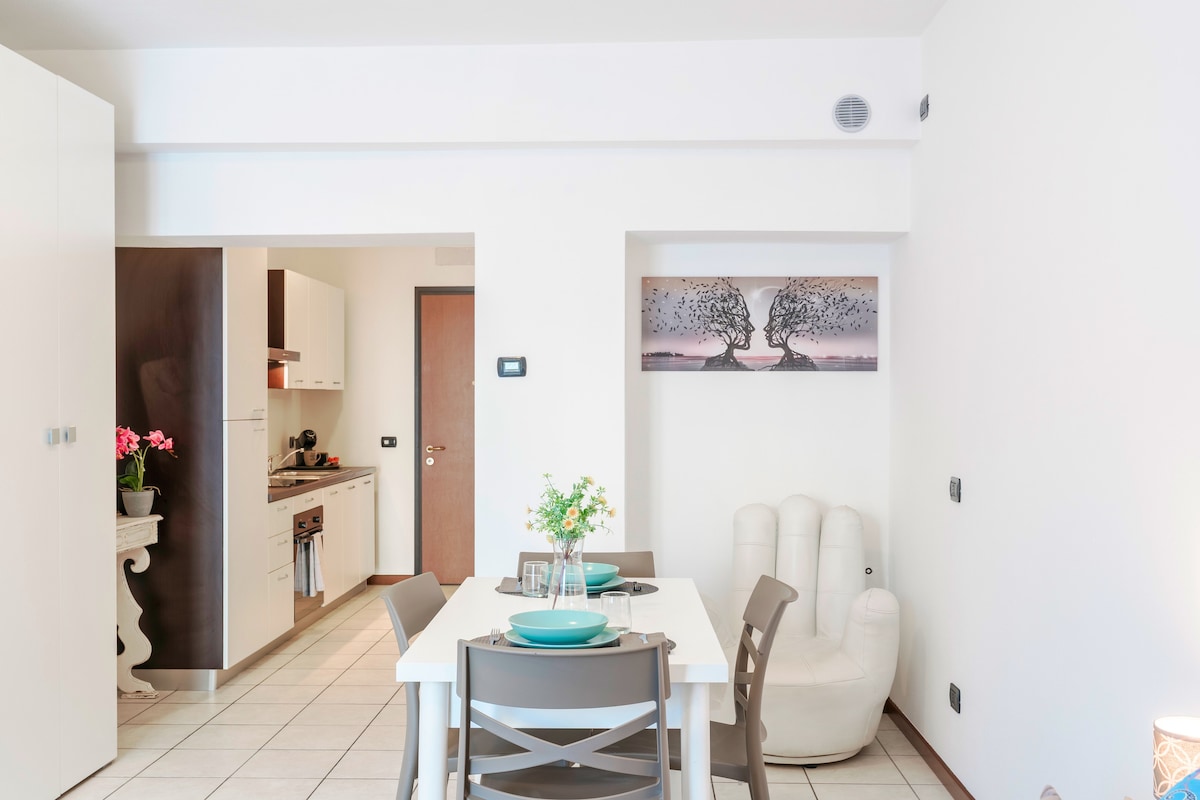 Bir tərəfdə qədim Venesiya divarları və şəhər mərkəzi boyunca uzanan yaşıl ictimai parka baxan 60 m2-lik rahat mənzil, digər tərəfdə isə kiçik su yolu. Səmimi və tanış qarşılama üçün klassik atmosfer "xalanın evində". Mətbəx, wi-fi ilə təchiz edilmiş iş sahəsi, həm qısa dayanacaq, həm də uzun müddətli qonaqlama üçün uyğun olan 2 eyvan, Milana avtobus əlaqəsindən bir neçə metr məsafədədir. Crema Cremona, Brescia və Lombard göllərindən 45 km məsafədədir.