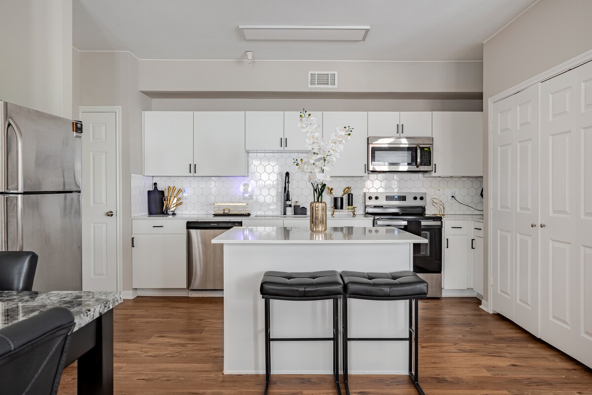 Mərkəzdə yerləşən bu kondominiumda dəbli təcrübədən zövq alın. Kimi əla imkanlarla doludur: - üzgüçülük hovuzu - sürətli Wi-Fi - təmassız giriş - pulsuz qəlyanaltılar və qəhvə - W&D Şəhərin OKC-nin mərkəzinə 5 dəqiqədən də az vaxt ayırırıq. Biz Midtown-da yerləşirik və əla səhər yeməyi yeməkxanasından məsafəni qət edirik. Şəhərin mərkəzində OKC-də etməli olduğunuz hər şeyə 5 dəqiqəlik yol. Bu yaxınlarda sizi nəzərə alaraq yenidən qurulub. Yüksək səviyyəli örtüklərlə gözəl dizayn edilmiş bu məkan yadda qalan olacaq.