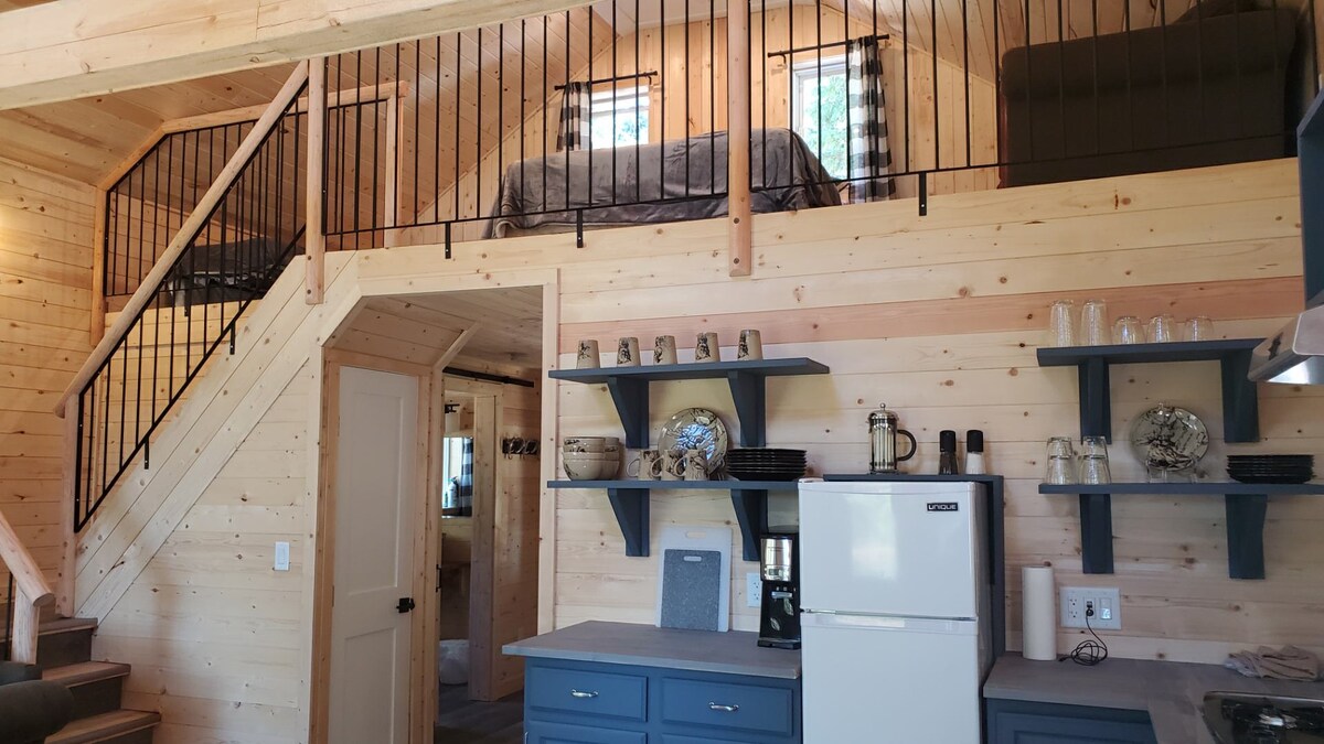 Visit the Emerald Hideaway, our family cabin we would love to share with you and yours! We are media neutral with adequate cell service. Emerald Hideaway is pet friendly. On the main floor is: kitchen, bathroom, bedroom, and living room. Upstairs is a loft with multiple beds- ideal for a large group with children or more than one family The cabin is walking distance from the lake- ideal for summer lake activities or winter tubing and skating. Backing onto crown land great for exploring