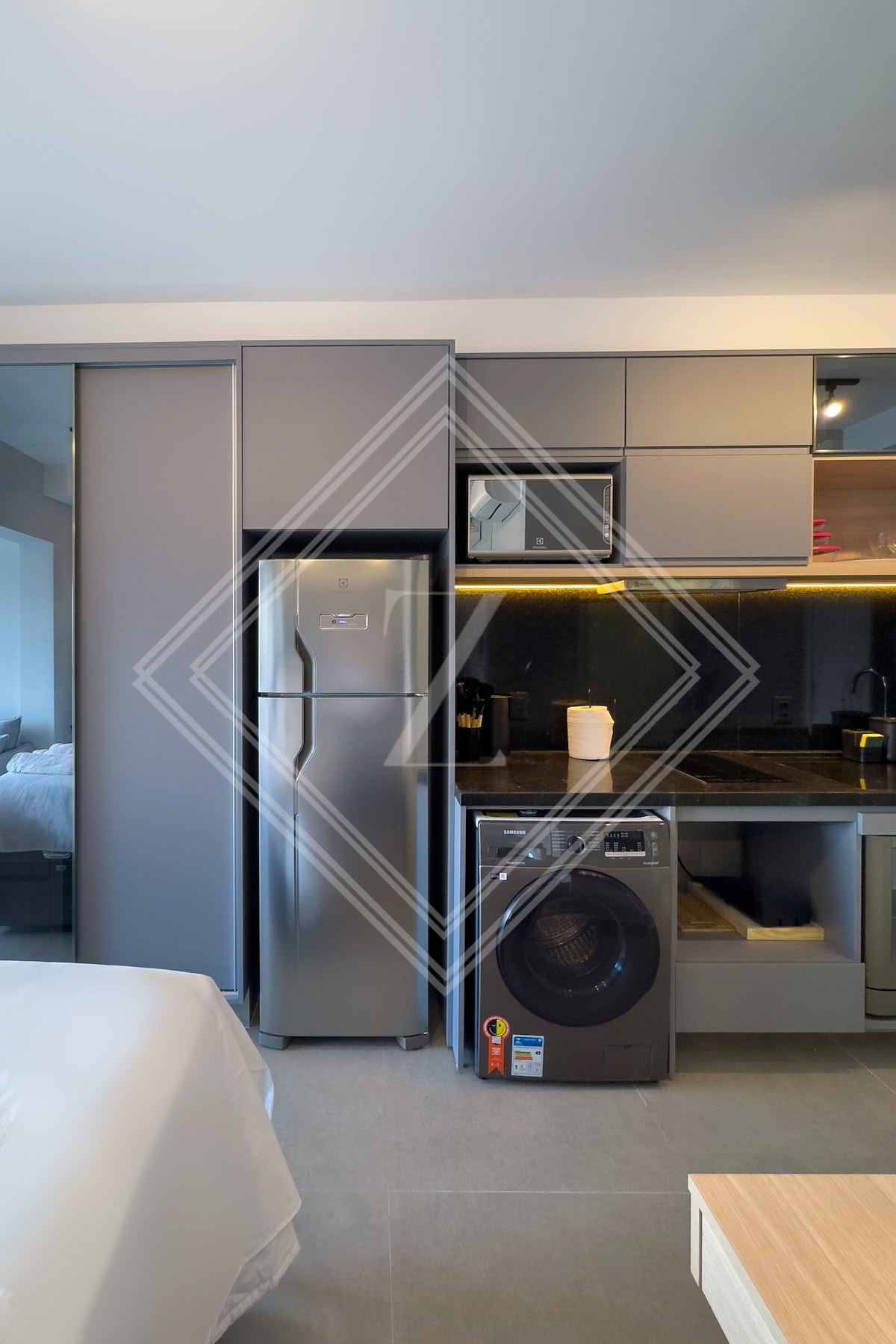 Studio moderno e equipado, com 25m², possui ambiente integrado com a cozinha e 1 banheiro, com vista e fechamento de vidro. Este apartamento tem todo o conforto que você precisa, para ter uma hospedagem agradável em São Paulo. O prédio conta com Quadra de Beach tênis, coworking e academia, além de máquinas de lavar roupa (com custo adicional), em área comum do prédio. Venha se hospedar no coração do Jardins, com bons restaurantes e lojas, a poucos passos da rua Oscar Freire!