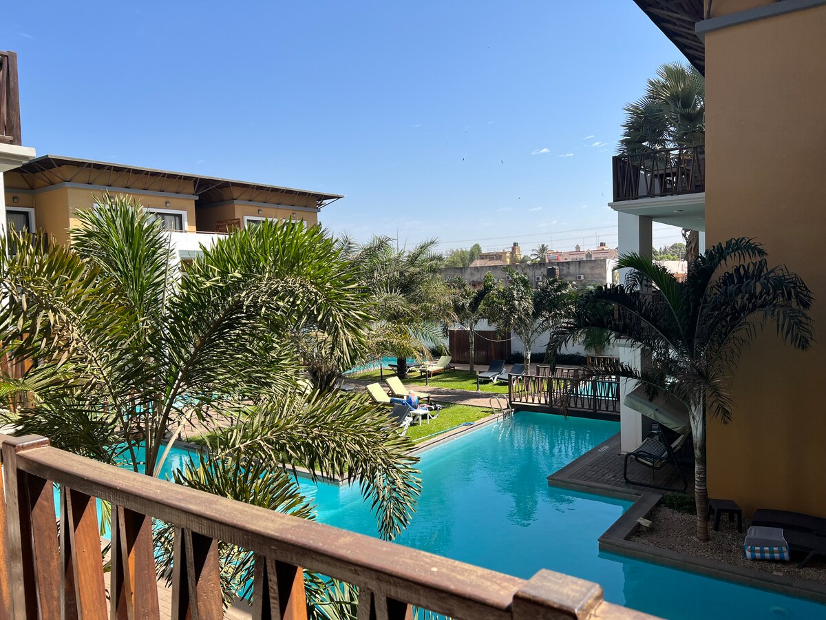 Afro-Chic Apartment in Senegambia Stunning 2-bedroom apartment 300m from the beach, decorated in Afro-chic style with locally crafted furniture. Near the conference center and top restaurants. Fully equipped kitchen (microwave, fridge, Nespresso), AC, Netflix, high-speed fiber, pool, kiddie pool, washing machine, generator. Bathroom with towels, shampoo, shower gel. 24/7 security, cleaning included. Coffee, tea, water provided. Perfect for business or leisure, book for a unique stay!