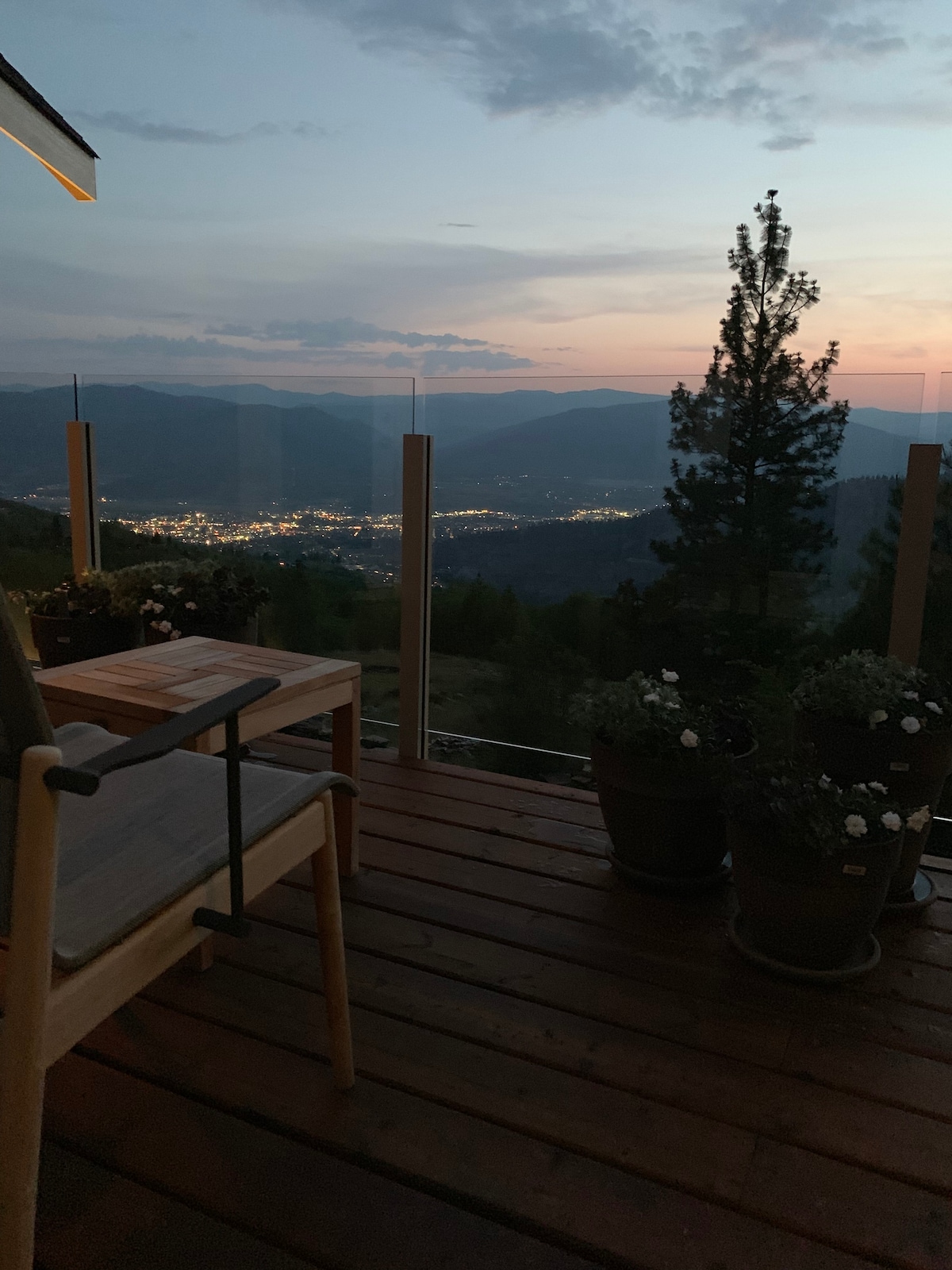 Grinch Ranch B&B is a MOUNTAINTOP getaway centrally located within the Southern Okanagan Wine Regions and is the ultimate escape for adults who seek rocky mountainous adventure Perched 9 km (600 meter elevation) above the city of Penticton, Grinch Ranch is one of Upper Carmi's residential 10 acre properties. Here you will enjoy long sunsets with endless 3 dimensional city, mountain and lake views Grinch Ranch is a 4 season adult only, romantic getaway