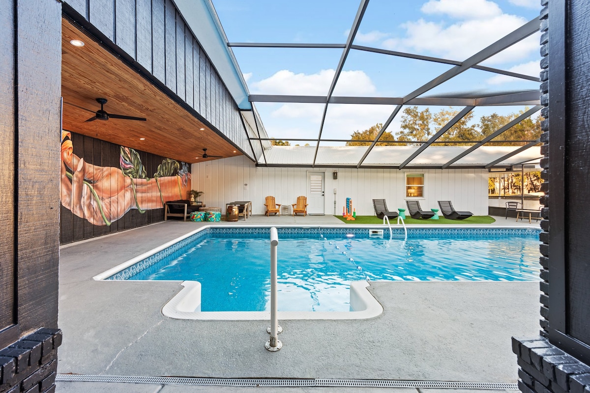 Yer üzündəki kiçik səma dilimimizə xoş gəlmisiniz! Bu evcik 40 hektarlıq ərazidə yerləşir və öz şəxsi gölü balıq və vəhşi təbiətlə doludur. İstədiyiniz qədər üzə, balıq tuta və ya üzə, eləcə də gördüyünüz qədər gəzə bilərsiniz. 5 dəqiqə uzaqlıqda bir çox antik mağaza və gözəl Cekson gölü təklif edən qəribə Florala şəhərində gəzintiyə çıxa bilərsiniz. Tübinq və üzgüçülüklə məşğul olmaq üçün ağ qum çimərlikləri, Ponce de Leon & Vortex Springs və ya Bear Paw & Econfina mənzərəli kreyserləri ilə Destin-ə baş çəkin!