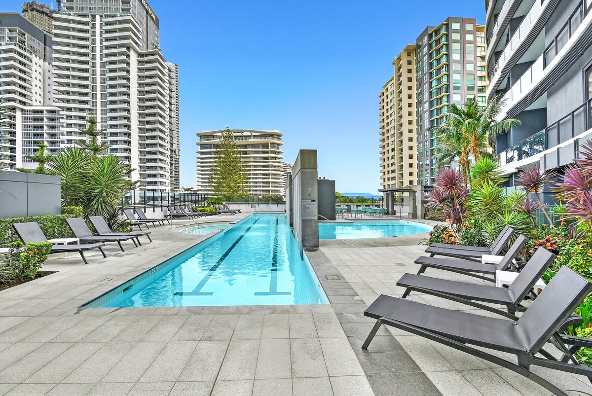 Lüks Müasir Broadbeach Oazis: Barbekü, Sauna və Hovuz