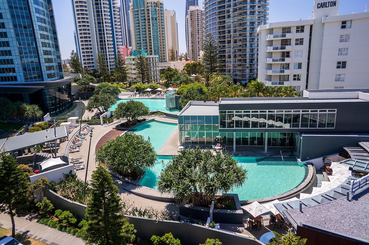 2 otaqlı Sörfçülər üçün cənnət guşəmizdə cənnətə qaçın! Cavill-də Mantra Dairəsində yerləşir, hamının ürəyindəsiniz. 2 açıq hovuza dalın, qapalı qızdırılan hovuzda dincəlin, idman zalı, sauna və spa, barbekü qurun, uşaqların oyun meydançasında oynamasına icazə verin və daha çoxu. İçəridə tam təchiz olunmuş mətbəx, spa hamamı, ağıllı televizor, PULSUZ Limitsiz WIFI və heyrətamiz okean və şəhər vistaları olan balkon. Təhlükəsiz gizli parkinq ilə asan istirahət edin. Xəyalınızdakı tətil buradan başlayır.