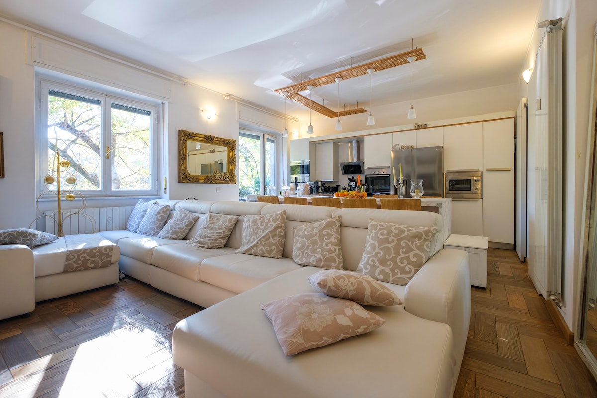 Müasir dizayn və gözəl materiallarla bəzədilmiş, kondisioner, BUXAR OTAĞI və Milan mənzərəsini 360 dərəcə görmək imkanı verən geniş terrası olan möhtəşəm pəncərəli mənzildə Milan ruhunu hiss edin. Talvarda qonaq otağı, mətbəx, hər birində geniş hamam otağı və çarpayılar olan 2 ikinəfərlik süita, eləcə də qonaq otağında 2 folda tək çarpayı və 3-cü hamam otağı var. Terrasda əlavə xərc, qaraj ödənişi ilə sorğu əsasında (girişdən ən azı 24 saat əvvəl) 4/1 - 10/31 tarixləri arasında mövcud olan cakuzi vannası var